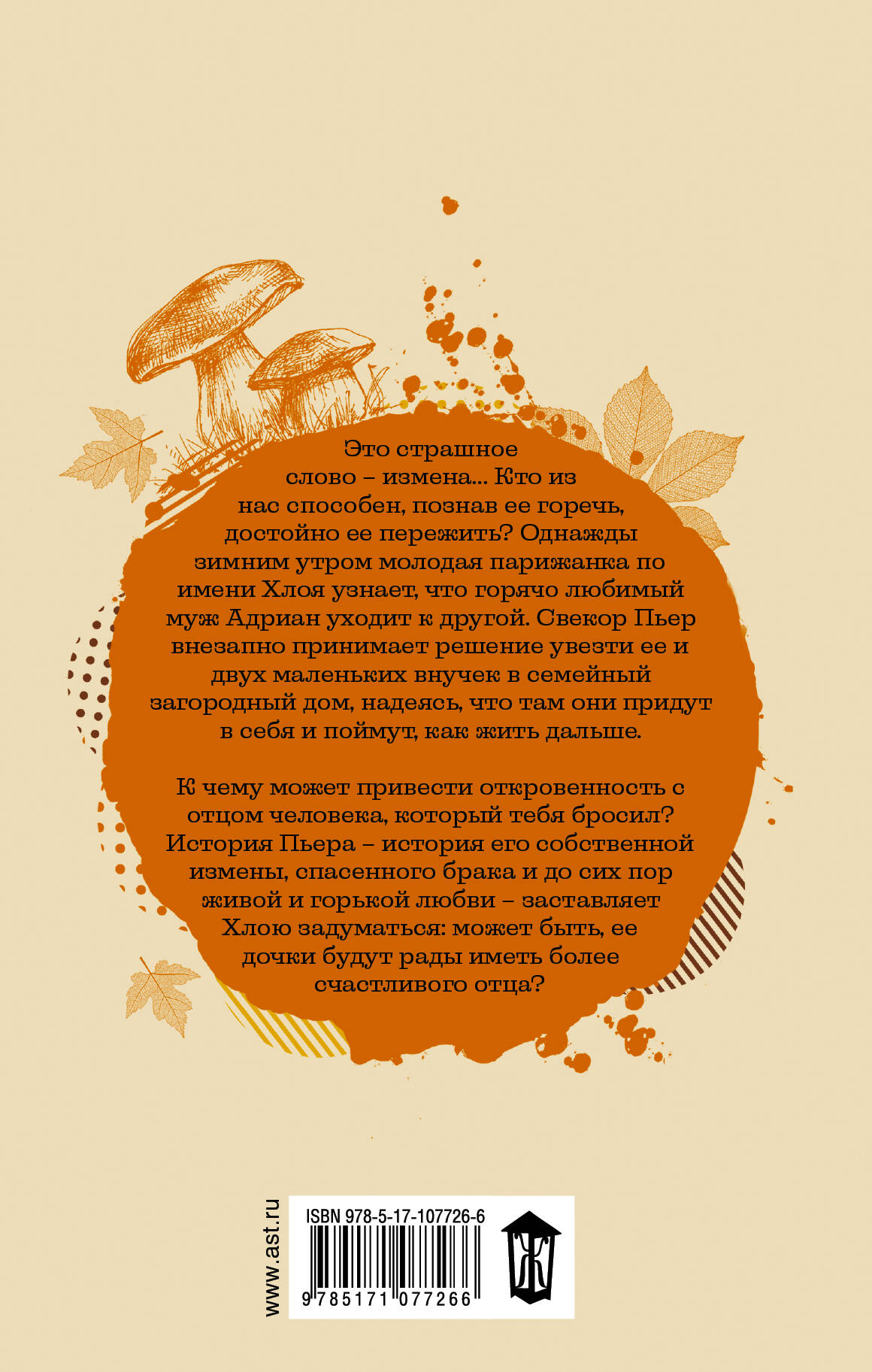 Это страшное слово - измена… Кто из нас способен, познав ее горечь, достойно ее пережить? Однажды зимним утром молодая парижанка по имени Хлоя узнает, что горячо любимый муж Адриан уходит к другой. Свекор Пьер внезапно принимает решение увезти ее и двух маленьких внучек в семейный загородный дом, надеясь, что там они придут в себя и поймут, как жить дальше. К чему может привести откровенность с отцом человека, который тебя бросил? История Пьера - история его собственной измены, спасенного брака и до сих пор живой и горькой любви - заставляет Хлою задуматься: может быть, ее дочки будут рады иметь более счастливого отца?| Издательство | ИЗДАТЕЛЬСТВО "АСТ" |