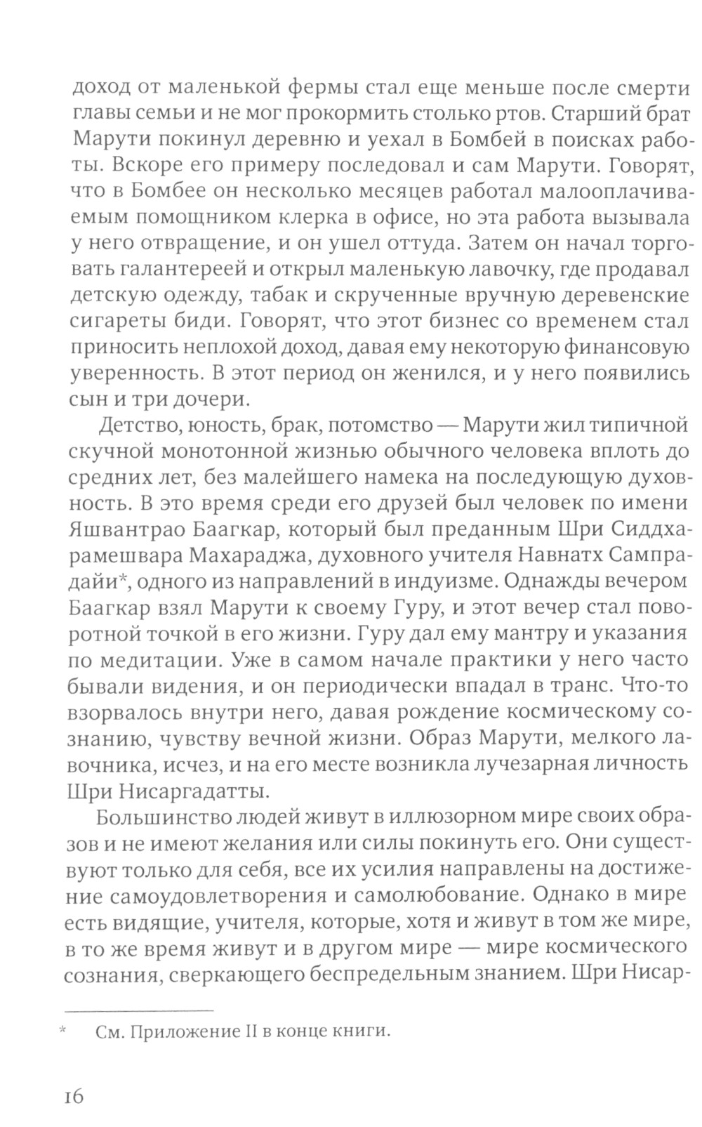 Нисаргадатта Махарадж (1897-1981) - реализованный Учитель адвайты (учение недвойственности). Книга содержит собрание бесед Нисаргадатты Махараджа, систематизированные и опубликованные Морисом Фридманом, с большой силой и убедительностью раскрывающих природу подлинной реальности. В ней даются исчерпывающие ответы на вопросы, связанные с поиском на духовном пути, отвечающие запросам всех типов искателей. Эта замечательная книга выдержала свыше 25-ти переизданий только в Индии, в США она переиздавалась более 13 раз, переведена на многие европейские языки, неизменно вызывая мощный резонанс у тех, кто читает её с искренней заинтересованностью.| Издательство | Изд. Ганга |