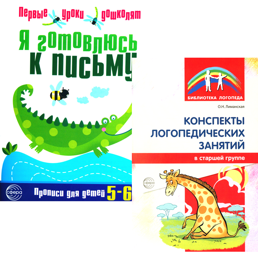 Комплект состоит из книг: 1. Я готовлюсь к письму. Прописи для детей 5-6 лет. 2. Конспекты логопедических занятий в старшей группе.| Издательство | Творческий центр Сфера |