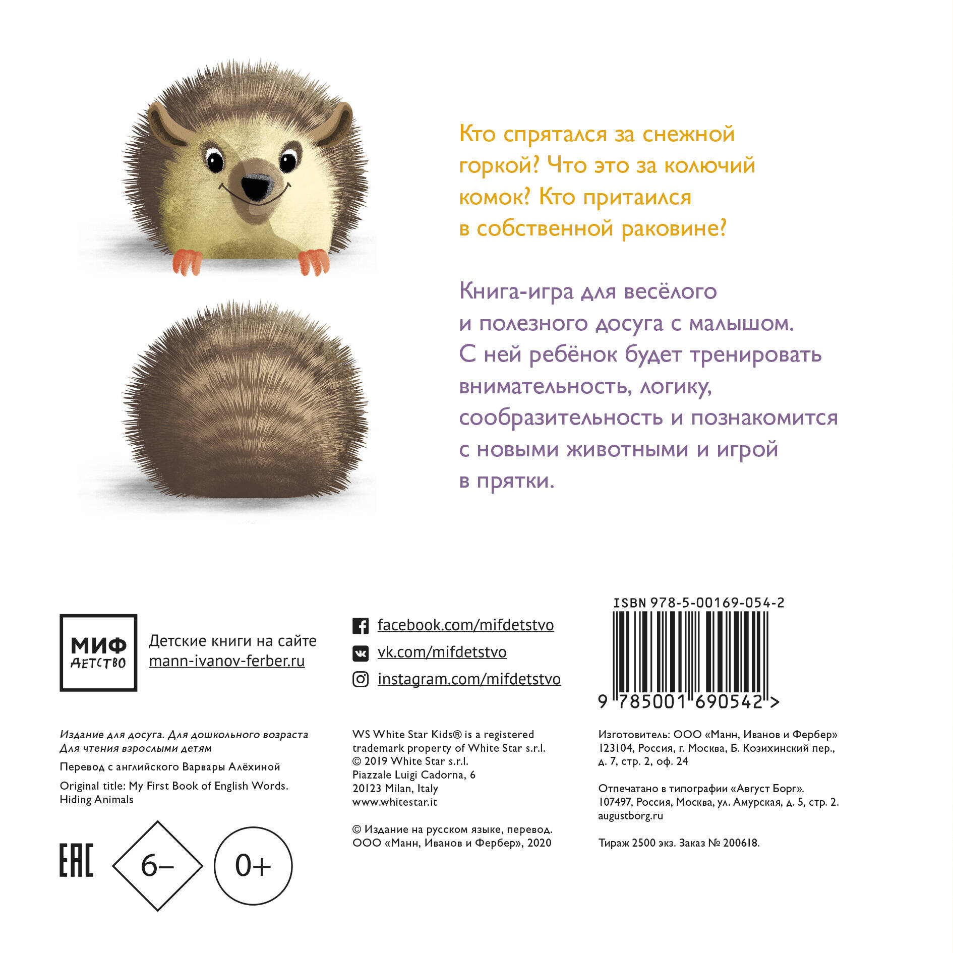 Книга-игра для веселого и полезного досуга с малышом. С помощью нее ребенок будет тренировать внимательность, логику, сообразительность и познакомится с новыми животными и игрой в прятки.| Издательство | МАНН, ИВАНОВ И ФЕРБЕР ООО |