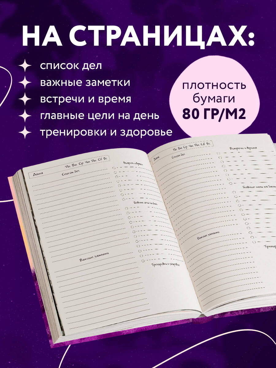 Нехватка времени и вечный цейтнот являются испытаниями, справиться с которыми под силу далеко не каждому. Мы разработали для вас линейку стильных ежедневников, которые помогут справиться с любой задачей, распланировать все дела и повысить личную эффективность. Фишки: - Обложки выполнены с учетом индивидуальных вкусов каждого. Общее у них лишь одно: стиль и актуальность. - Толщина блока разработана с учетом ваших требований: вы сможете брать ежедневник с собой, а также работать с ним в офисе. - Белая плотная бумага внутри. - Сетка блока создана с учетом современных тенденций европейского дизайна: часть распределена по времени - для ваших рабочих дедлайнов, а другая часть - линейки, которые можно использовать как для личных заметок, так и для планирования рабочих задач. Выбирайте лучшее! Технические параметры: - Формат: А5 (138×200 мм). - Обложка: интегральная. - Вид скрепления: шитье нитками. - Блок: офсет 80 гр. - 72 л.| Издательство | ООО "Издательство "Эксмо" |