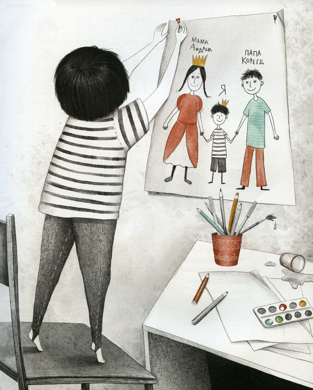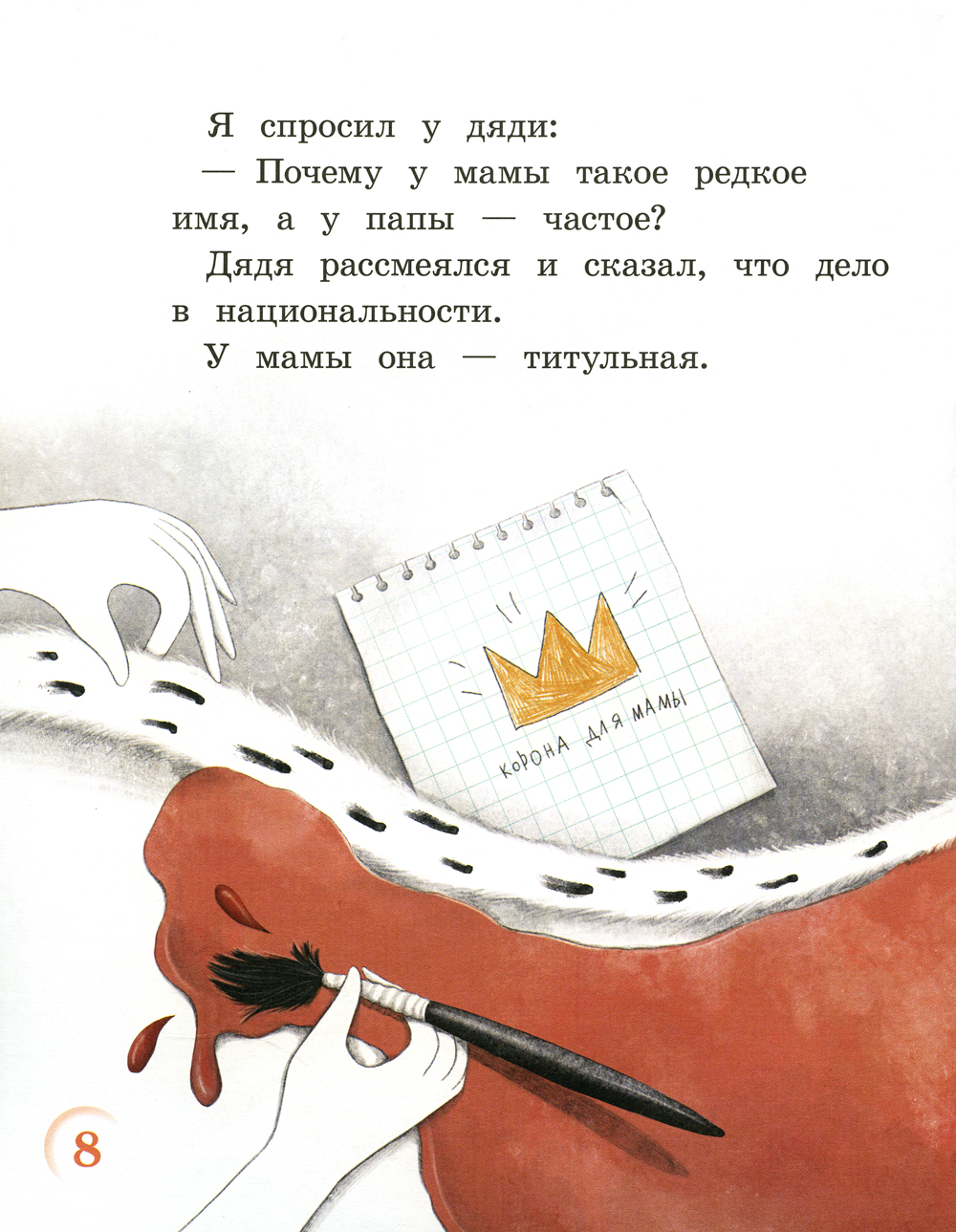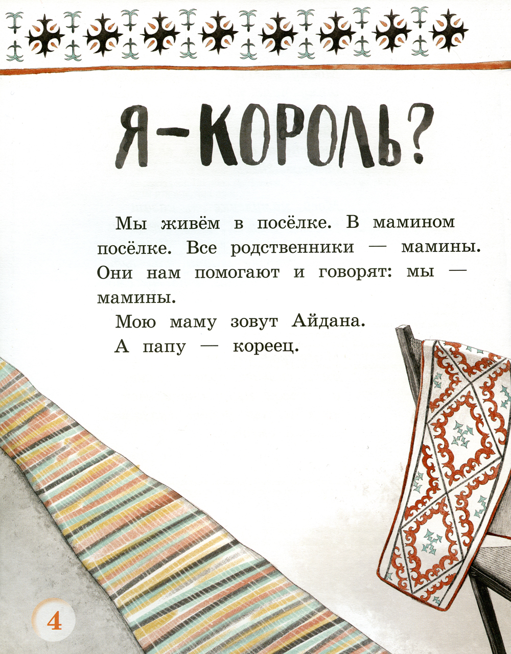 «Я - король?» - это маленькие истории от разных детей. Но все они об одном: какими бы разными мы ни были, все мы - просто люди. И гораздо важнее то, что мы чувствуем, о чём мечтаем, что говорим и делаем, чем какое-то условное деление: по цвету кожи, национальности, странам. Из-за предрассудков это так сложно для взрослых, но так просто - как дышать - для детей. В этом их достоинство, и этому у них стоит поучиться: они точно знают, что ты - человек, я - человек, и разницы между нами - нет. Аделия Амраева - писатель и переводчик, преподаватель немецкого и турецкого языков. Её повесть «Я хочу жить» была отмечена премией им. В. Крапивина и в 2018 году вошла в каталог выдающихся детских книг мира «Белые вороны», составляемый Мюнхенской международной детской библиотекой. Автор убеждена в том, что дети не понимают и не принимают взрослых стереотипов и крайне важно учить их быть друг другу не волком, а человеком. Эту мысль великолепно развивают и поддерживают иллюстрации, созданные художницей Полиной Ерофеевой. Она исключительно чутко уловила настроение героев и с большой любовью передала самые разные оттенки чувств детей.