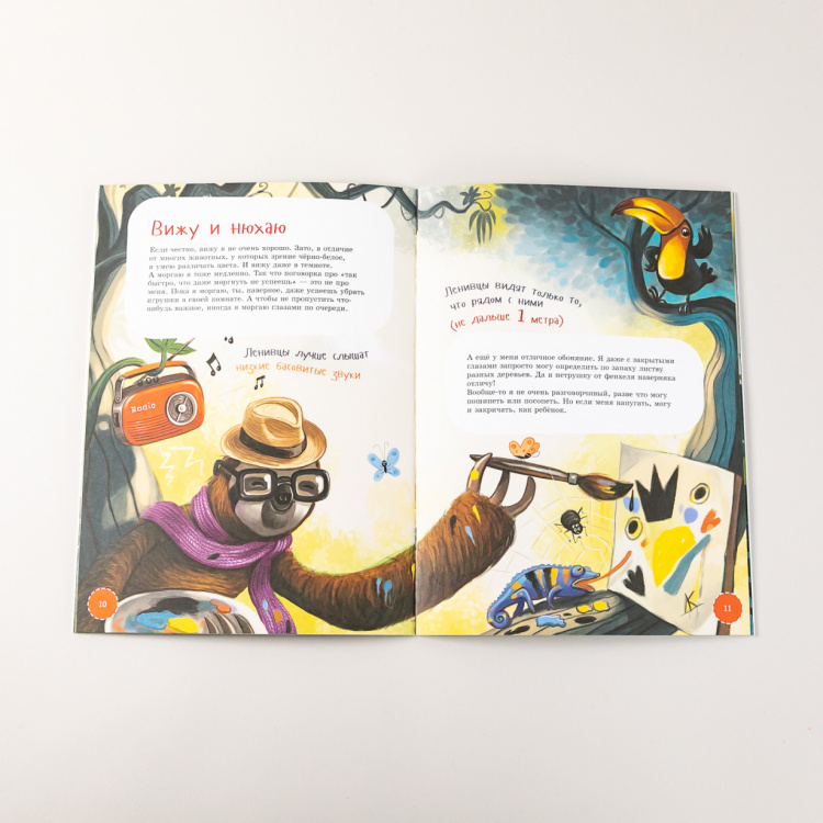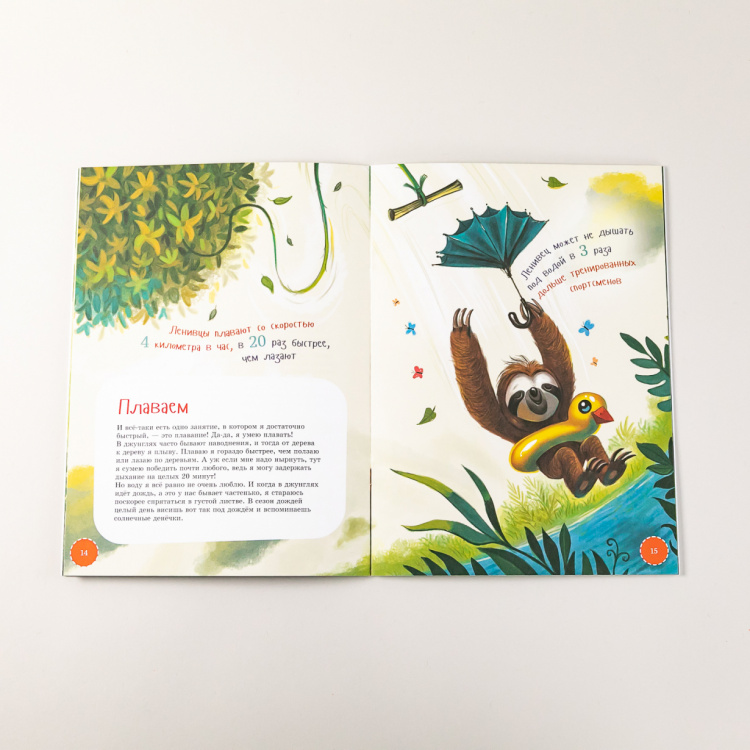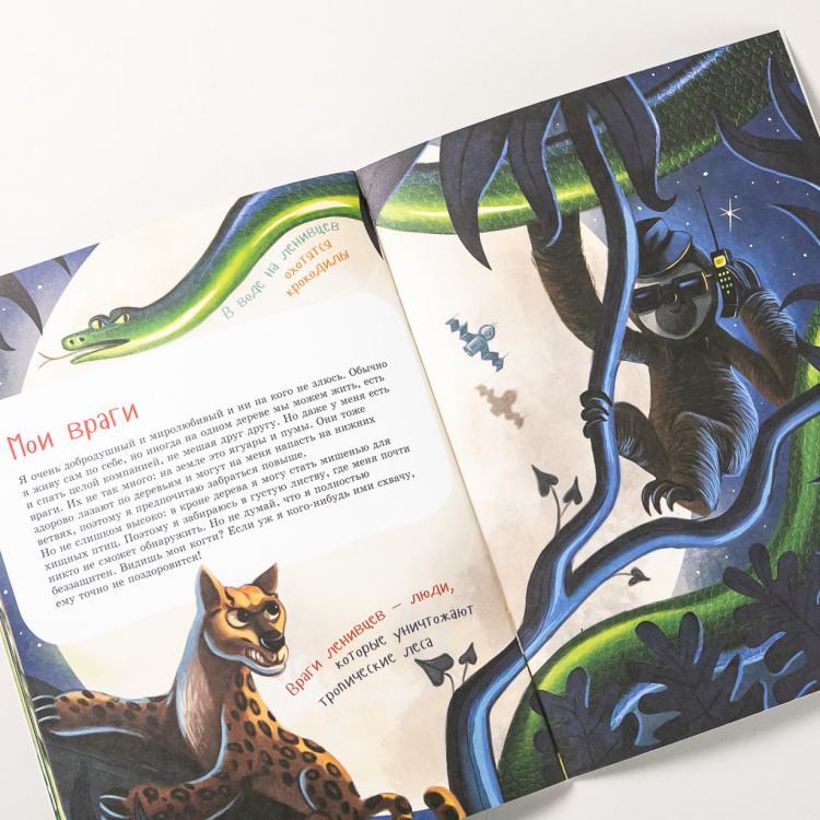 Ленивцы - уникальные создания! Они самые медлительные из всех зверей, передвигаются по деревьям спиной вниз (больше никто так не умеет!), могут целый месяц не есть, а в шерсти у них живут сине-зелёные водоросли и настоящие бабочки! Несмотря на огромные когти, ленивцы очень добродушные и миролюбивые: они никогда не ссорятся друг с другом. Вот бы людям у них поучиться!