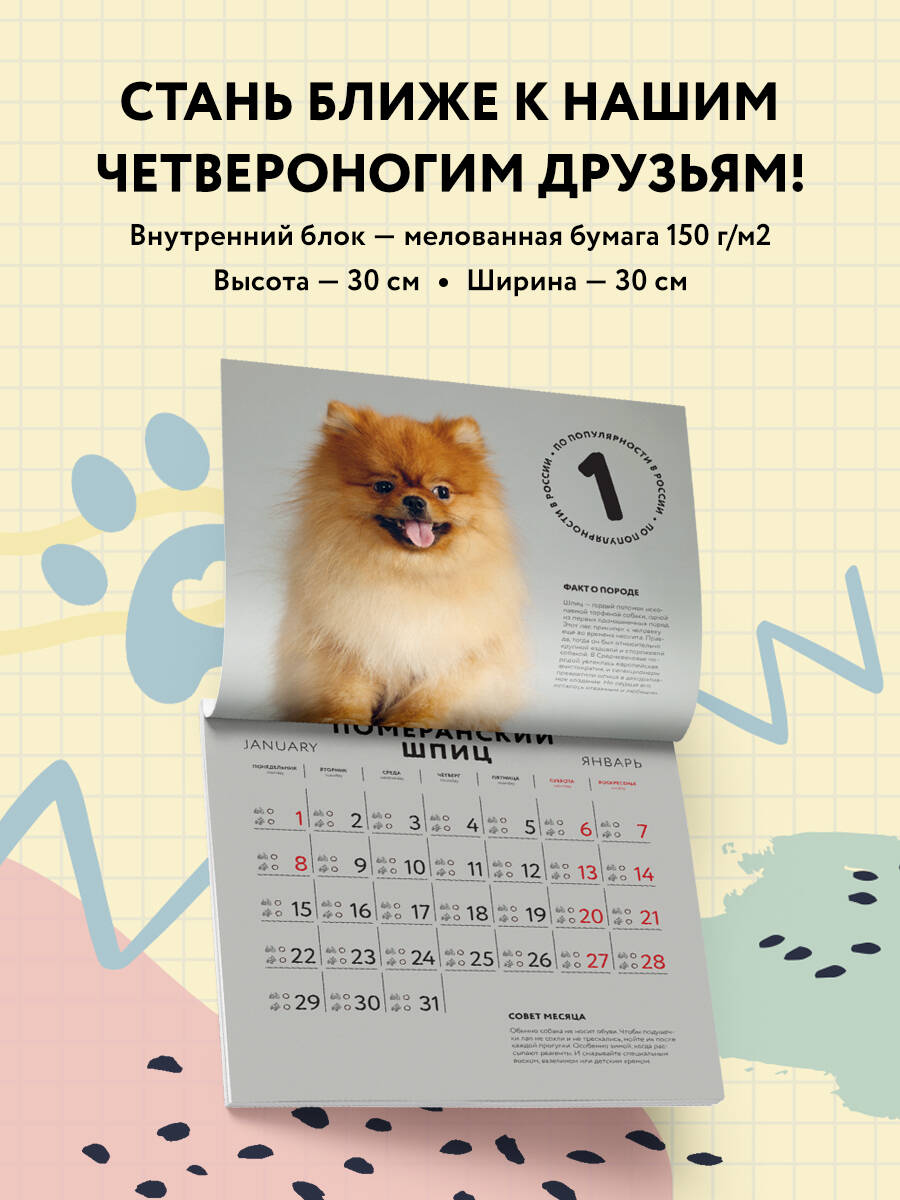 О серии: Наши настенные календари отличаются высоким качеством исполнения! Тщательно подобранные иллюстрации, напечатанные на глянцевой бумаге высочайшего качества, станут настоящим украшением дома, а в календарной сетке найдется место для ваших планов: большие клетки позволят делать записи и организовать свой год! В серии настенных календарей издательства «ЭКСМО» каждый найдет тему по вкусу: великие художники, великолепные подборки с самыми знаменитыми произведениями искусства, легендарные кинематографические саги и игры, главные книжные авторы и бестселлеры, фотографии и иллюстрации любимых животных и многое-многое другое! О календаре: На каждом развороте фотография няшной собаки и один интересный факт из истории породы. В каждом месяце по одному совету по уходу за собакой. В сетке - трекеры активности и гигиены. Для кого: Высокое качество полиграфического исполнения прекрасно дополняют милые фотографии собак и занимательные факты о них. Благодаря календарю мы сможем стать ближе к нашим четвероногим друзьям. Технические параметры: - Тип календаря - настенный перекидной. - Год - 2024. - Календарная сетка - с разбивкой по месяцам. - Вид скрепления - скрепка. - Ширина - 30 см. - Высота - 30 см. - Внутренний блок - мелованная бумага 150 г/м2. - Подложка - плотный гофрокартон для поддержания формы. - Индивидуальная упаковка в плотный целлофановый пакет.