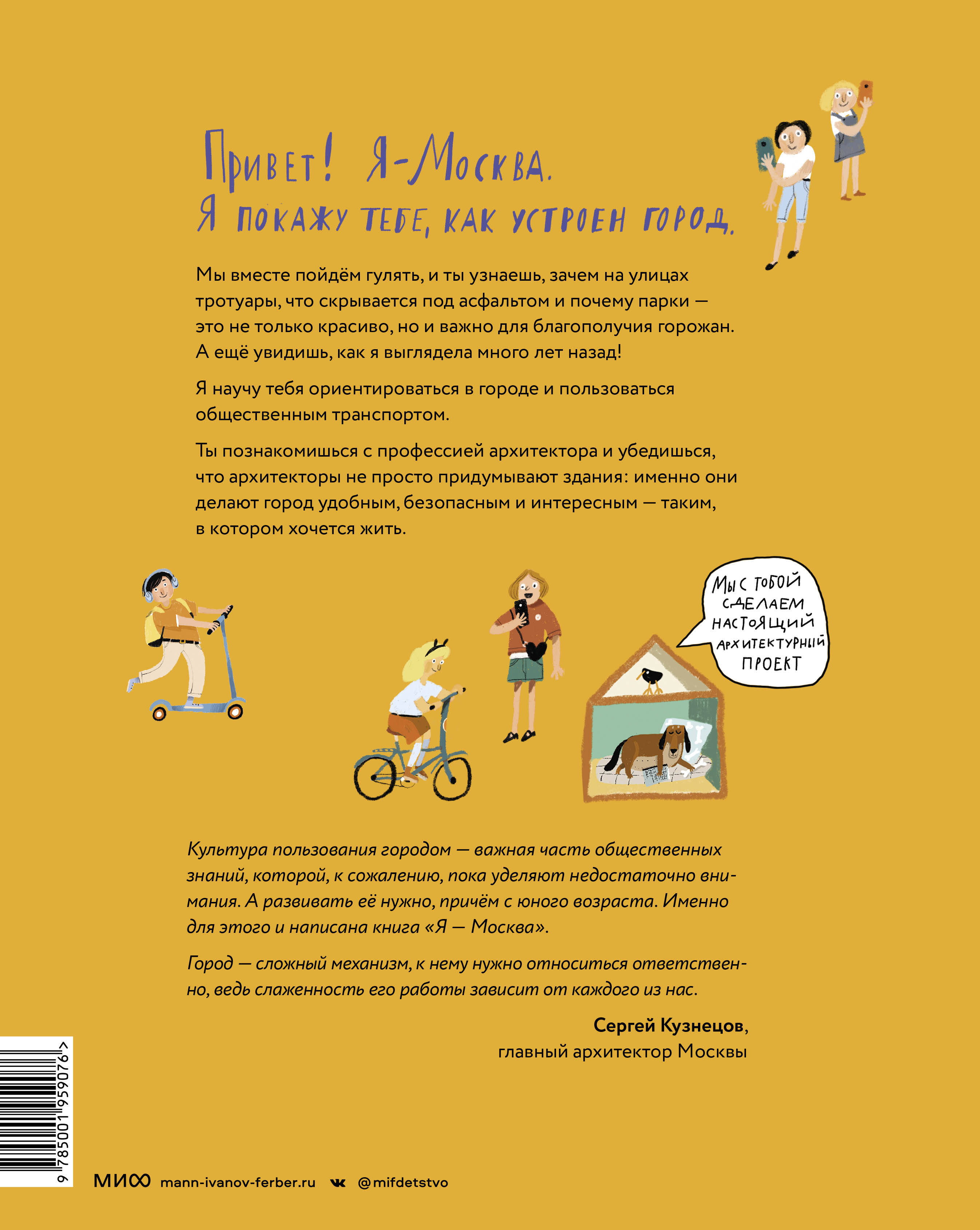 Перед вами книга про архитектуру и урбанистику для детей. Сама Москва приглашает читателей на прогулку: она расскажет, как устроен большой город, покажет улицы и площади, парки и набережные, дома, музеи, театры и стадионы... Читатели узнают, чем похожи друг на друга Токио и Буэнос-Айрес, что скрывается под асфальтом и почему в любом городе обязательно должен быть парк. А еще научатся пользоваться общественным транспортом и запомнят пять правил хорошего города. Благодаря этой книге дети познакомятся с профессией архитектора и убедятся, что его работа - не только придумывать здания, но и делать город безопасным, интересным и комфортным для жителей. Вместе с Культурным Котом читатели подготовят собственный архитектурный проект, узнают, как выглядит обыкновенная школа в разрезе, посмотрят на Москву с крыши здания и попробуют представить себе город будущего - ведь на то, каким он будет, может повлиять каждый из нас. От автора: Дорогие читатели, моя мысль проста: с городом можно подружиться! Бывает, что люди пользуются пространством, в котором живут, на автомате. Но ведь город - живой организм. Сложные системы создаются архитекторами и урбанистами, чтобы сделать жизнь горожанина проще и увлекательнее. Разобраться в этом - безумно интересно! Книга написана от лица Москвы. Я горжусь этой находкой и считаю, что с одной стороны это ответственно, но с другой - естественно. Потому что человек и город неотделимы. Эта книга - моя интерпретация того, как я вижу и чувствую Москву. Кому-то она покажется знакомой, а кто-то, возможно, захочет поспорить. И это хорошо! Потому что для каждого Москва своя. После написания книги я почувствовала, что сблизилась с городом. Теперь мы с Москвой будто подружки. Очень хочется, чтобы больше людей стали добрыми друзьями со своим городом. Ведь дружба - это о безусловной любви, помощи и взаимном интересе! Фишки книги: - Книга написана от лица города Москвы. Читатель сможет услышать живой голос города - Внутри есть отдельная карта с маршрутом-квестом для прогулки - В книге есть раскрывающиеся развороты, которые наглядно показывают жизнь большой улицы и архитектурный проект школы - На страницах много увлекательных заданий Для кого эта книга: Для всех, кто хочет понять, как функционирует город и подружиться с ним: от того, насколько человек понимает, как город работает зависит то, насколько комфортно и уютно ему будет жить в нем. Для тех, кто интересуется профессией архитектора. Для всей семьи.| Издательство | МАНН, ИВАНОВ И ФЕРБЕР ООО |