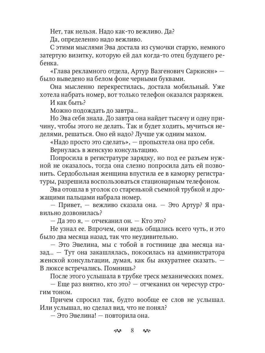 На смотринах будущей невесты я получил звонок с неизвестного номера. Какая-то нахалка попыталась убедить меня, что беременна, и отец - я. Потом незнакомка как в воду канула, сколько я ее ни искал, не нашел. Я уже подумал - это была шутка. Братья были такого же мнения… А потом она позвонила мне еще раз и потребовала алименты.| Издательство | Т8 RUGRAM |