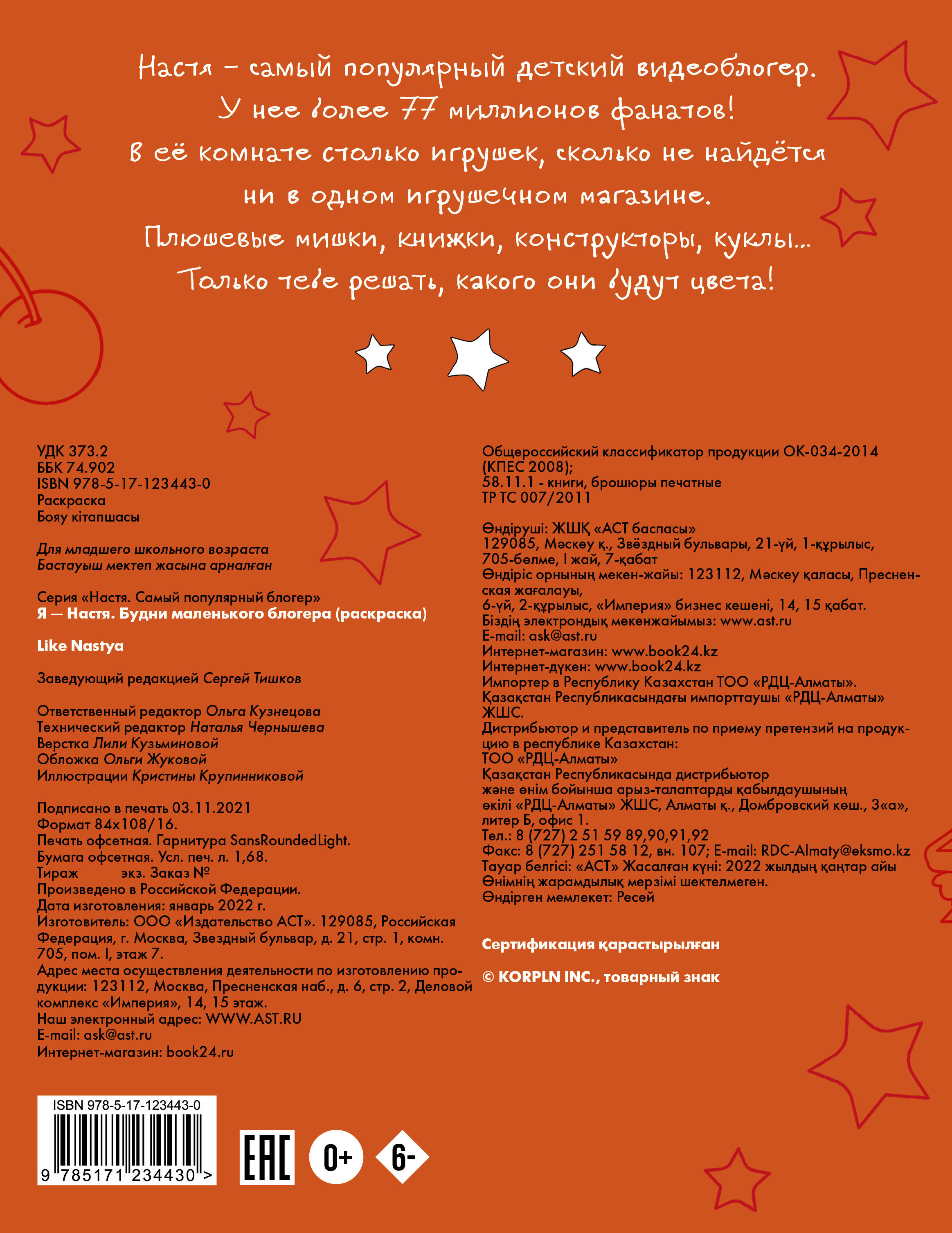 Настя - самый популярный детский видеоблогер. У нее более 77 миллионов фанатов! Каждый день перед ней стоит множество непростых испытаний. Съесть кашу на завтрак, не забыть почистить зубы, снять видео для канала и отправиться в магазин за новыми игрушками! Скорее хватай карандаши и присоединяйся к Насте. Она научит тебя, каково это - быть настоящим блогером!| Издательство | ИЗДАТЕЛЬСТВО "АСТ" |