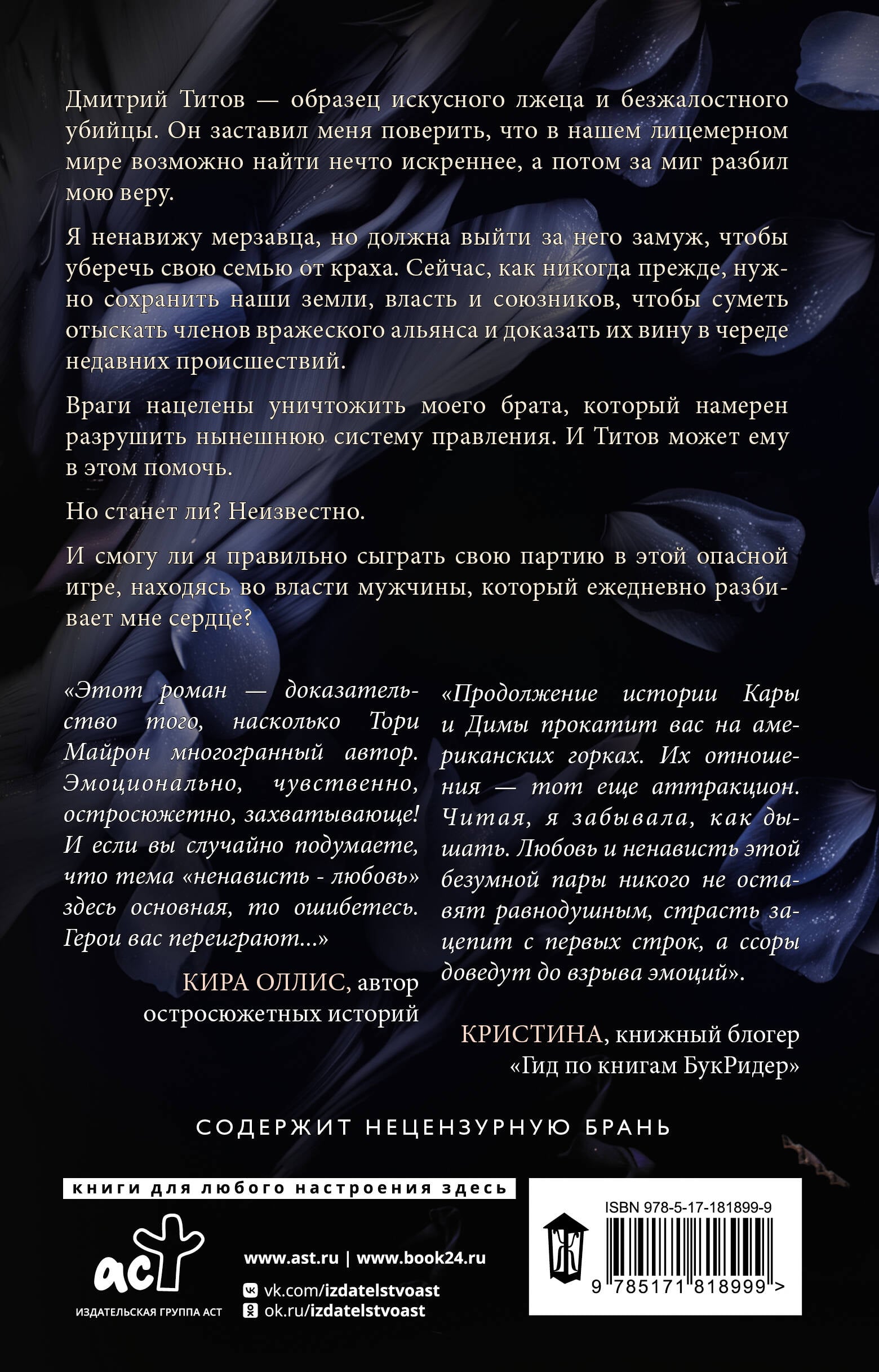 - Новинка для поклонников темной мафиозной романтики в стиле Коры Рейли. - Увлекательное продолжение криминальной саги Тори Майрон. Вторая часть цикла «Игры династий», конец дилогии «Я переиграю тебя». - Захватывающий и жуткий быт мафиозных семей, искрящееся противостояние главных героев, нестандартная главная героиня и обаятельный главный герой-мерзавец. - Тропы: от ненависти до любви, dark romance, мафия, red flag, противостояние, договорной брак, сиквел, криминал. - Цветные форзацы, уникальная верстка, вкладка с тремя цветными иллюстрациями, фольга на обложке.| Издательство | Издательство "АСТ" |