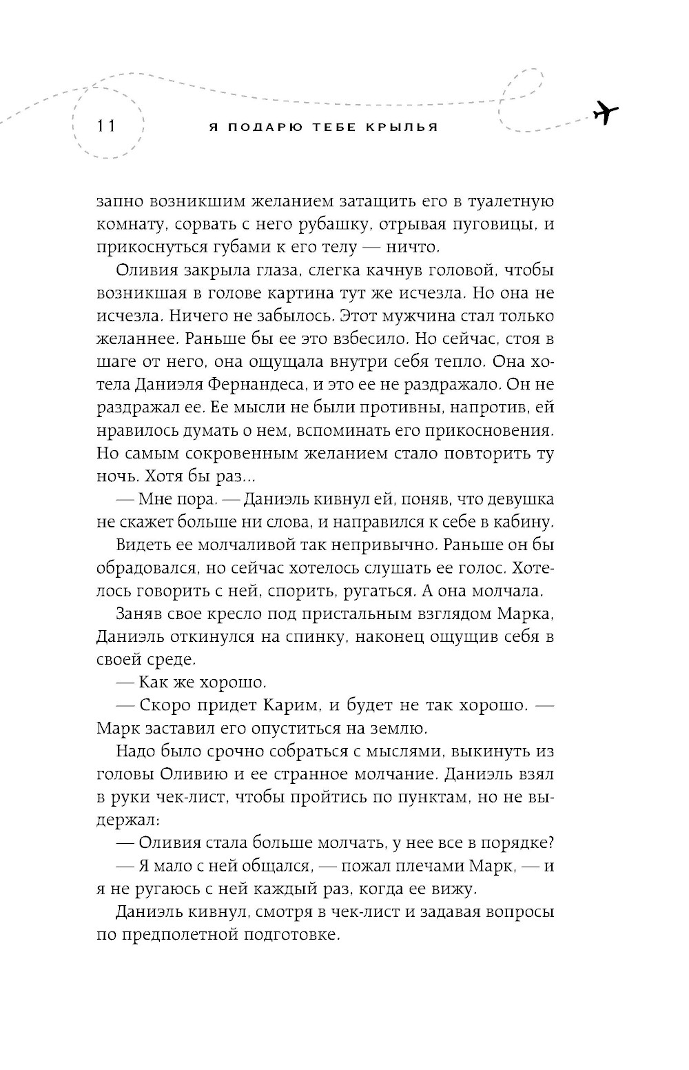 Комплект из 2 книг: Я подарю тебе крылья. Книга 1 Оливия Паркер была рождена летать. Ее не остановит ни личная трагедия, ни смена родного Лондона на экзотический Дубай, ни высокомерный капитан двухпалубного А380, с которым Оливия вынуждена заключить пари - проигравший уходит с борта крупнейшего пассажирского самолета. Даниэль Фернандес Торрес трижды пожалел о своем решении взять в члены экипажа заносчивую англичанку. Эта девушка - буря и шторм среди ясного неба, порыв бокового ветра, меняющий направление самолета. Невозможная, упрямая, гордая и такая... прекрасная. Я подарю тебе крылья. Книга 2 Экипаж А380 овациями встретил вернувшегося из Аликанте капитана. Даниэль Фернандес Торрес уезжал в надежде забыть гордую девушку с глазами цвета неба и возвращался, чтобы помнить. Она все так же перечила, дерзила и... магнитом тянула к себе, заставляя забыть обо всех запретах. Для Оливии Паркер работа в «Arabia Airlines» всегда стояла на первом месте, и отношения с капитаном не смогут этого изменить. Так ей казалось. Но внештатная ситуация с не вышедшей передней стойкой шасси, когда от катастрофы их отделяли мгновения, расставила все по своим местам и помогла осознать, что же на самом деле имеет ценность.| Издательство | Эксмо |