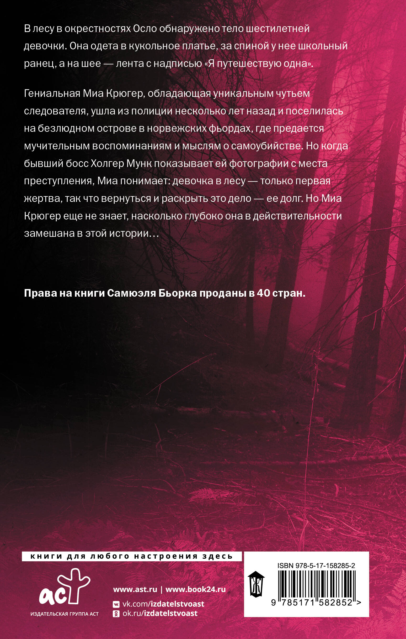 В лесу в окрестностях Осло обнаружено тело шестилетней девочки. Она одета в кукольное платье, за спиной у нее школьный ранец, а на шее - лента с надписью "Я путешествую одна". Гениальная Миа Крюгер, обладающая уникальным чутьем следователя, ушла из полиции несколько лет назад и поселилась на безлюдном острове в норвежских фьордах, где предается мучительным воспоминаниям и мыслям о самоубийстве. Но когда бывший босс Холгер Мунк показывает ей фотографии с места преступления, Миа понимает: девочка в лесу - только первая жертва, так что вернуться и раскрыть это дело - ее долг. Но Миа Крюгер еще не знает, насколько глубоко она в действительности замешана в этой истории…| Издательство | Издательство "АСТ" |