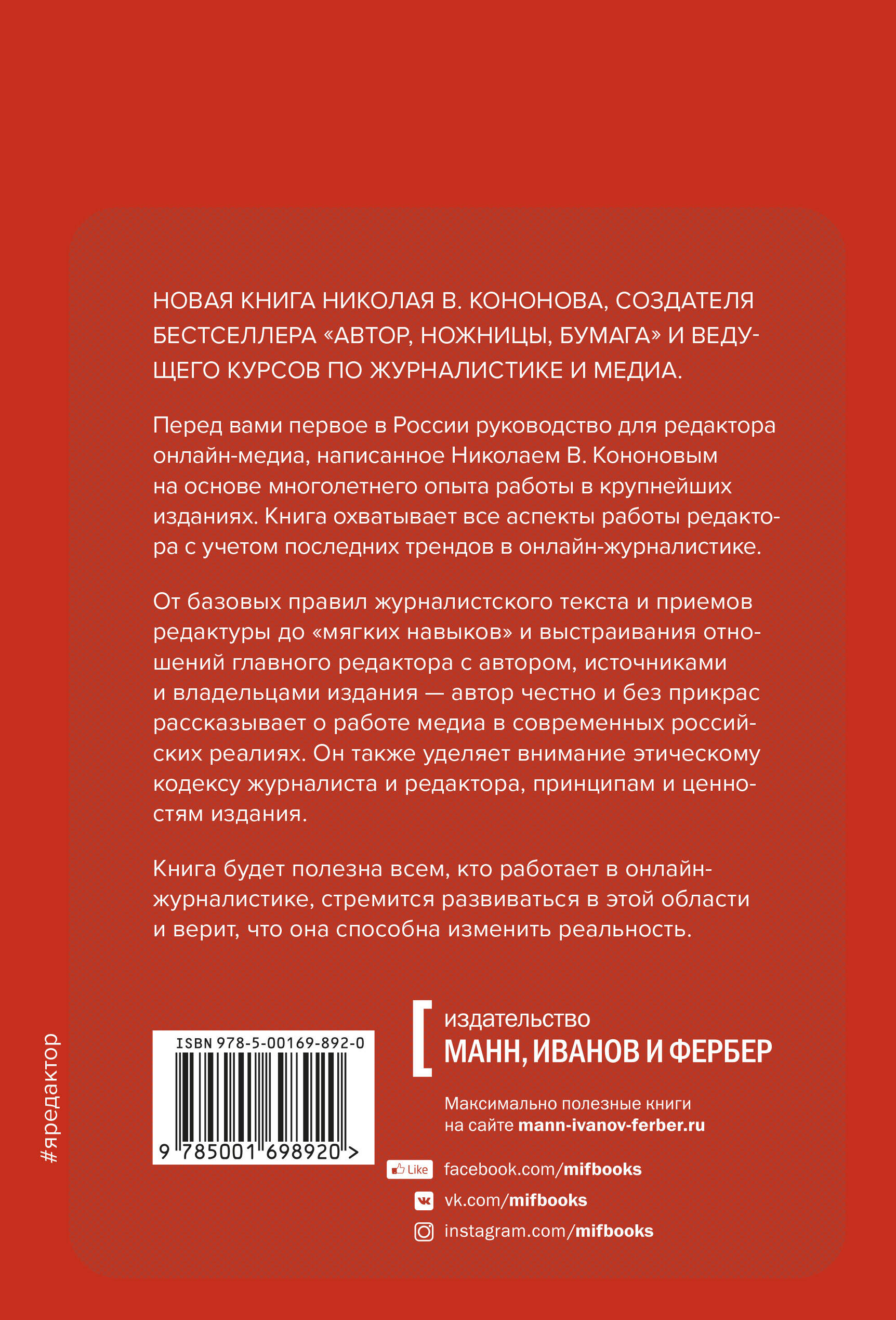 Первое в России руководство для редактора онлайн-медиа, написанное Николаем В. Кононовым на основе опыта работы в крупнейших изданиях. Книга охватывает все аспекты работы редактора.| Издательство | МАНН, ИВАНОВ И ФЕРБЕР ООО |