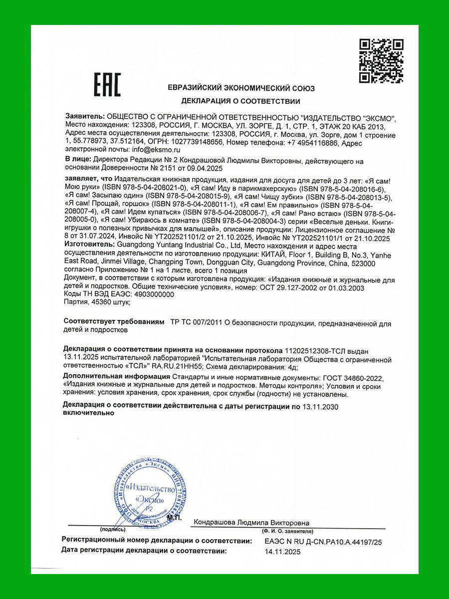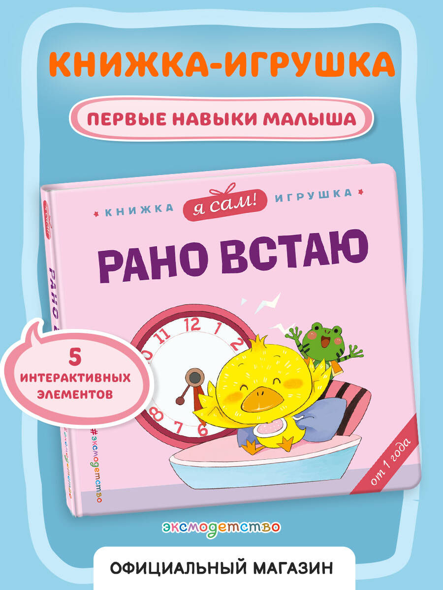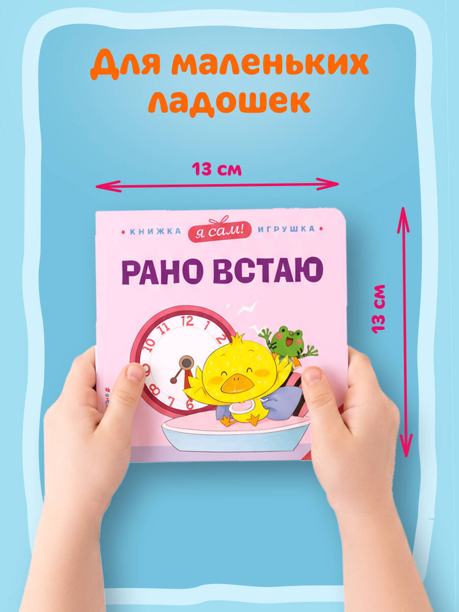 Интерактивные книги-игрушки про полезные привычки - то, что нужно всем родителям для веселого и эффективного воспитания малыша! Осваивать правила поведения с помощью книжек-игрушек - легко и интересно! На каждой странице подвижные элементы: окошки, крутилки, тянучки, которые развивают мелкую моторику и вовлекают ребенка в процесс обучения. Кажется, Утёнок проспал до обеда! А что успели за это время сделать его друзья? Вместе с Утёнком малыш поймет, зачем нужно вставать рано каждое утро! Яркие иллюстрации привлекают внимание ребенка и дарят положительные эмоции. Прочные страницы и скругленные углы безопасны для маленьких ручек и долговечны. Компактный формат книги позволяет не только читать ее дома, но и брать с собой на прогулку или в путешествие. Издание предназначено для детей до 3-х лет. Выучите все полезные привычки в других книгах серии «Веселые деньки. Книги-игрушки о полезных привычках для малышей»: «Я сам! Ем правильно», «Я сам! Засыпаю один», «Я сам! Иду в парикмахерскую», «Я сам! Идем купаться», «Я сам! Мою руки», «Я сам! Прощай, горшок», «Я сам! Убираюсь в комнате», «Я сам! Чищу зубки».| Издательство | ООО "Издательство "Эксмо" |