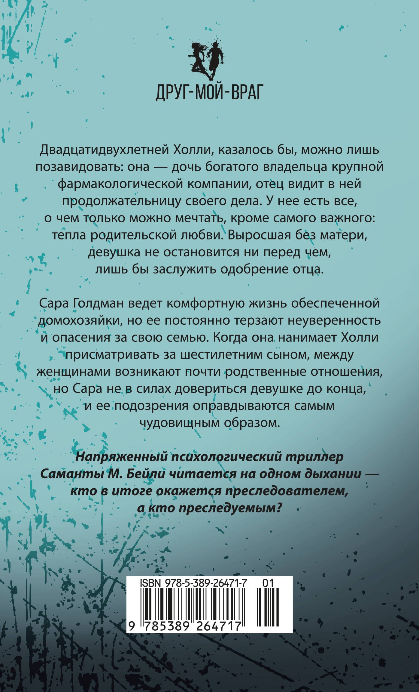 Сара Голдман нанимает симпатичную двадцатидвухлетнюю Холли присматривать за своим шестилетним сыном, и сначала все складывается просто идеально. Маленький Джейкоб обожает няню, а Холли видит в Саре образ матери, которой у нее никогда не было, и практически становится членом семьи. Однако мнительная Сара все же не может до конца довериться Холли и начинает следить за ней… Результаты слежки приводят к открытию, настолько шокирующему, что Сара с мужем бегут на другой конец страны, планируя начать жизнь сначала. Но в новом жилище супруги обнаруживают скрытые камеры, а по ночам вокруг рыскает подозрительная фигура, - неужели за Голдманами кто‑то следит? И если так, кто это может быть?| Издательство | Азбука-Аттикус Издат.группа ООО |