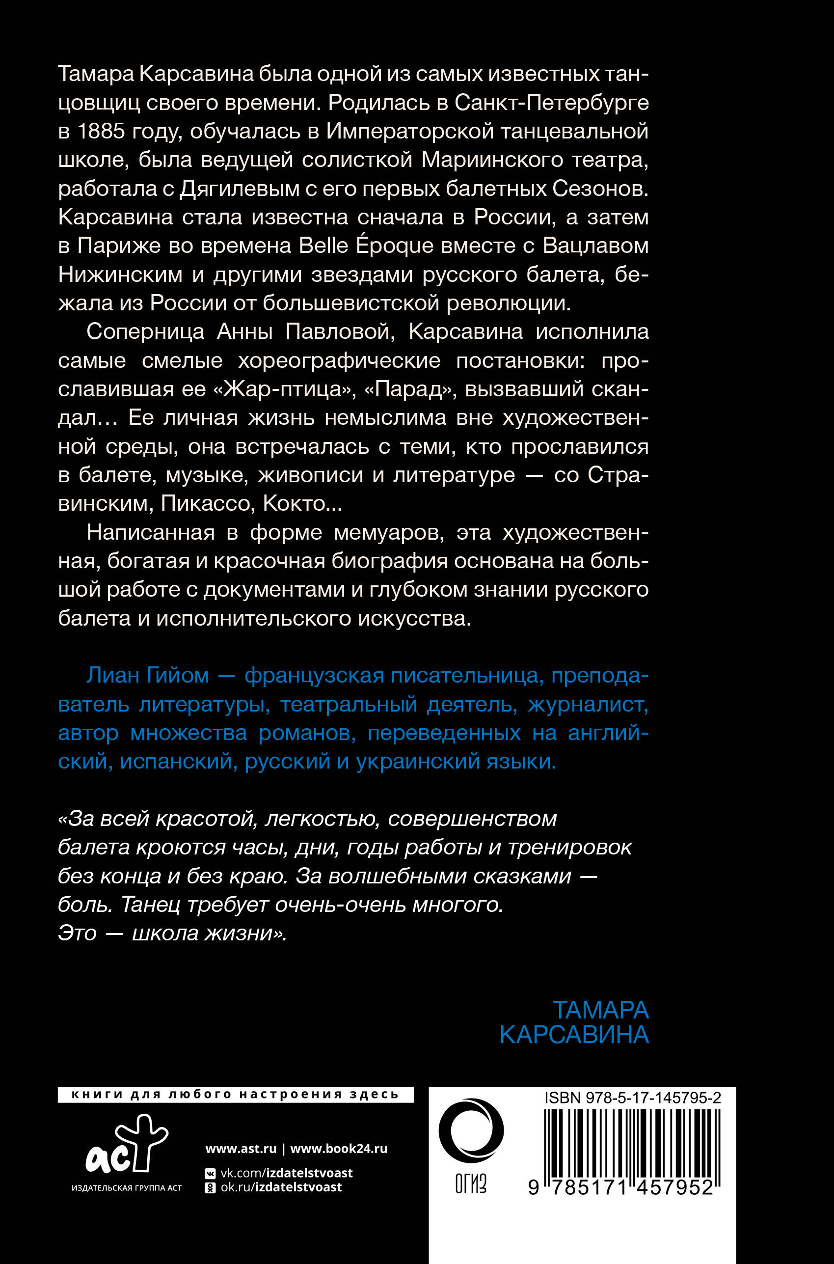 В книгах серии «Большой балет» перед глазами читателя разворачивается масштабная ретроспектива творческих судеб выдающихся балерин, танцовщиков и хореографов классического танца, олицетворяющих гордость мирового балета. Закулисная жизнь выдающейся русской балерины Тамары Красавиной (1885 - 1978) была переполнена вдохновляющими и трагичными эпизодами. За совершенством её танца скрывались годы изнуряющей работы, а блестяще воплощенные ею образы Жизель, Спящей красавицы и Одетты стоили многих потерь и разочарований. Настоящее издание - биография звезды «Русских балетов», составленная французской писательницей, преподавателем литературы, театральным деятелем и журналистом Лиан Гийом.| Издательство | АСТ |