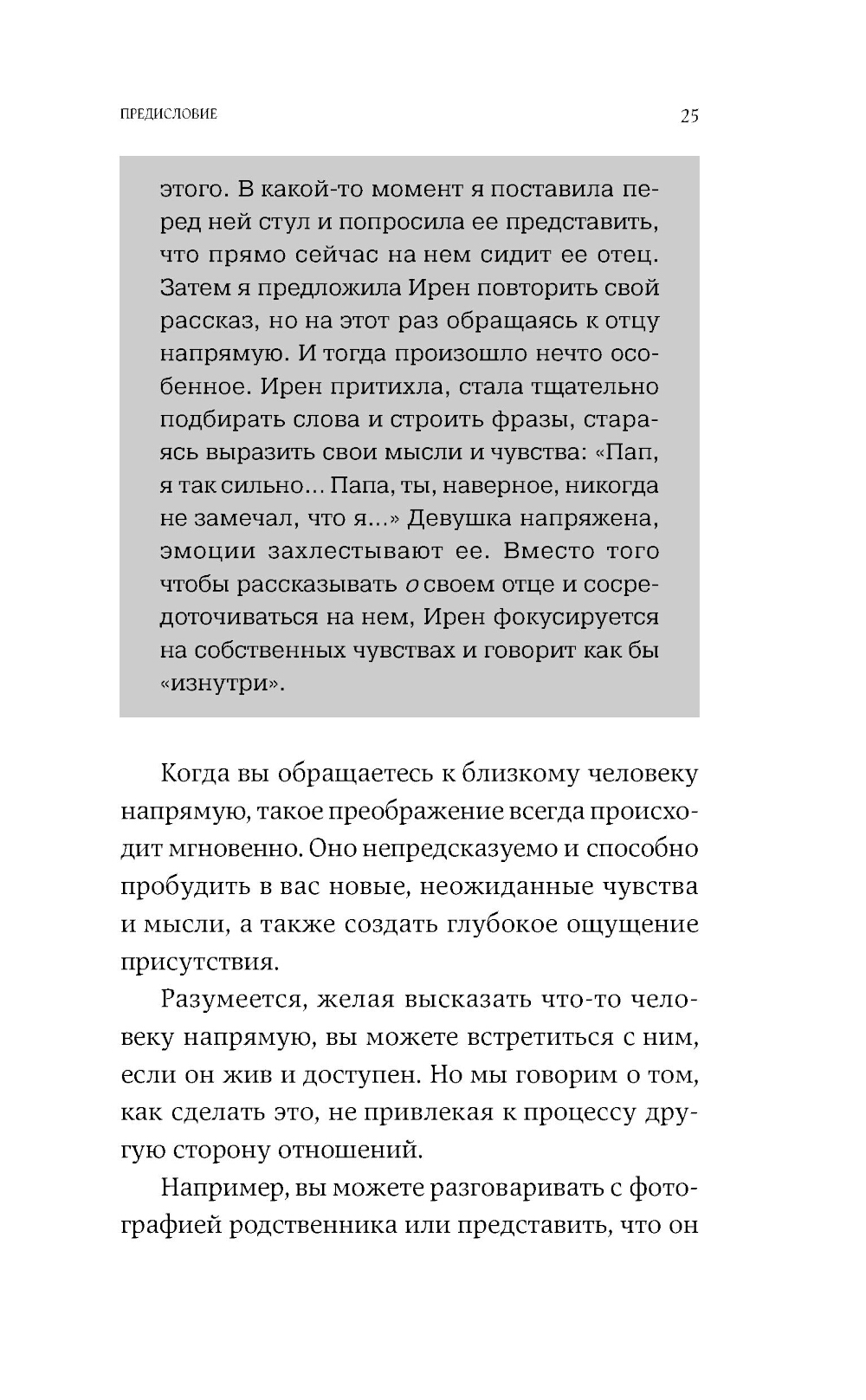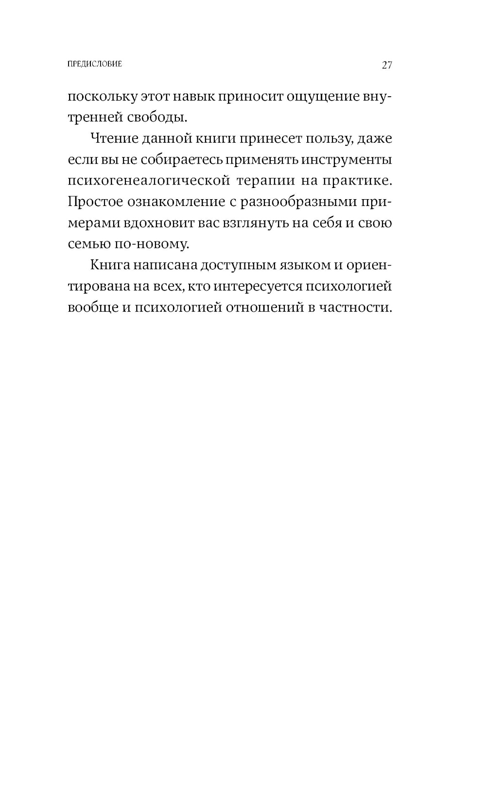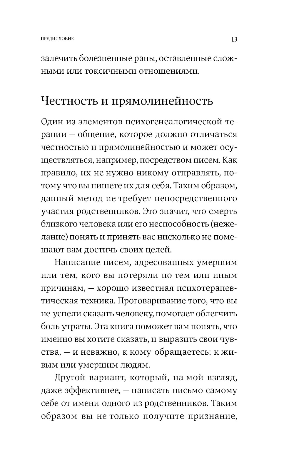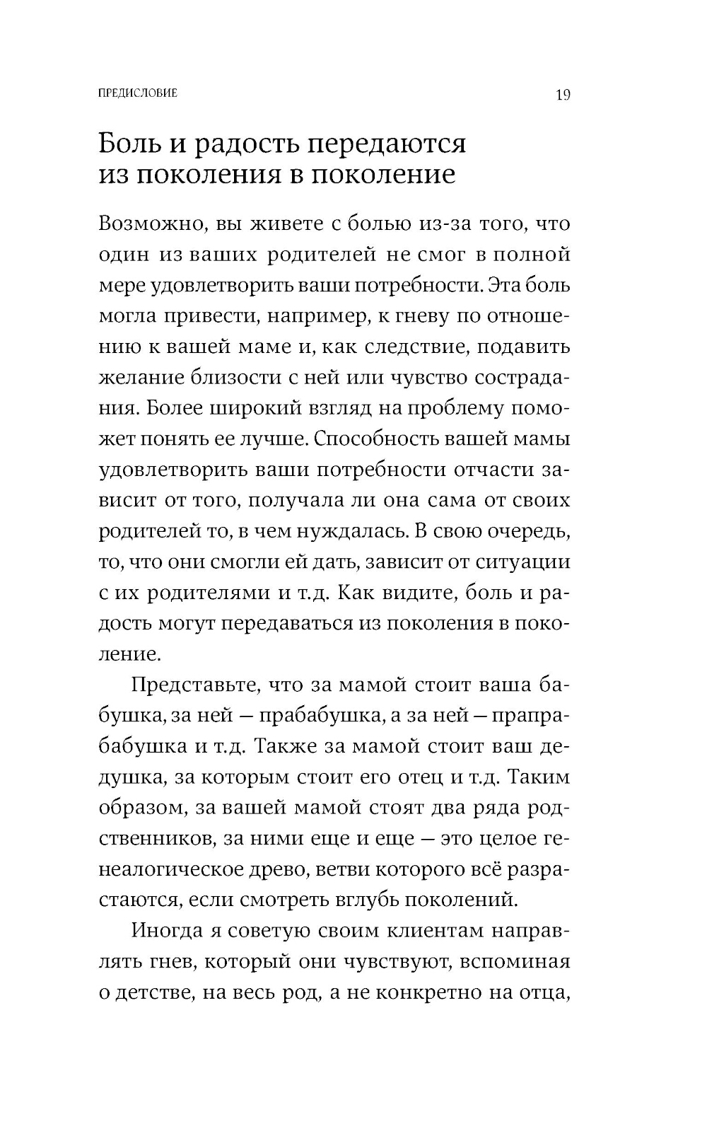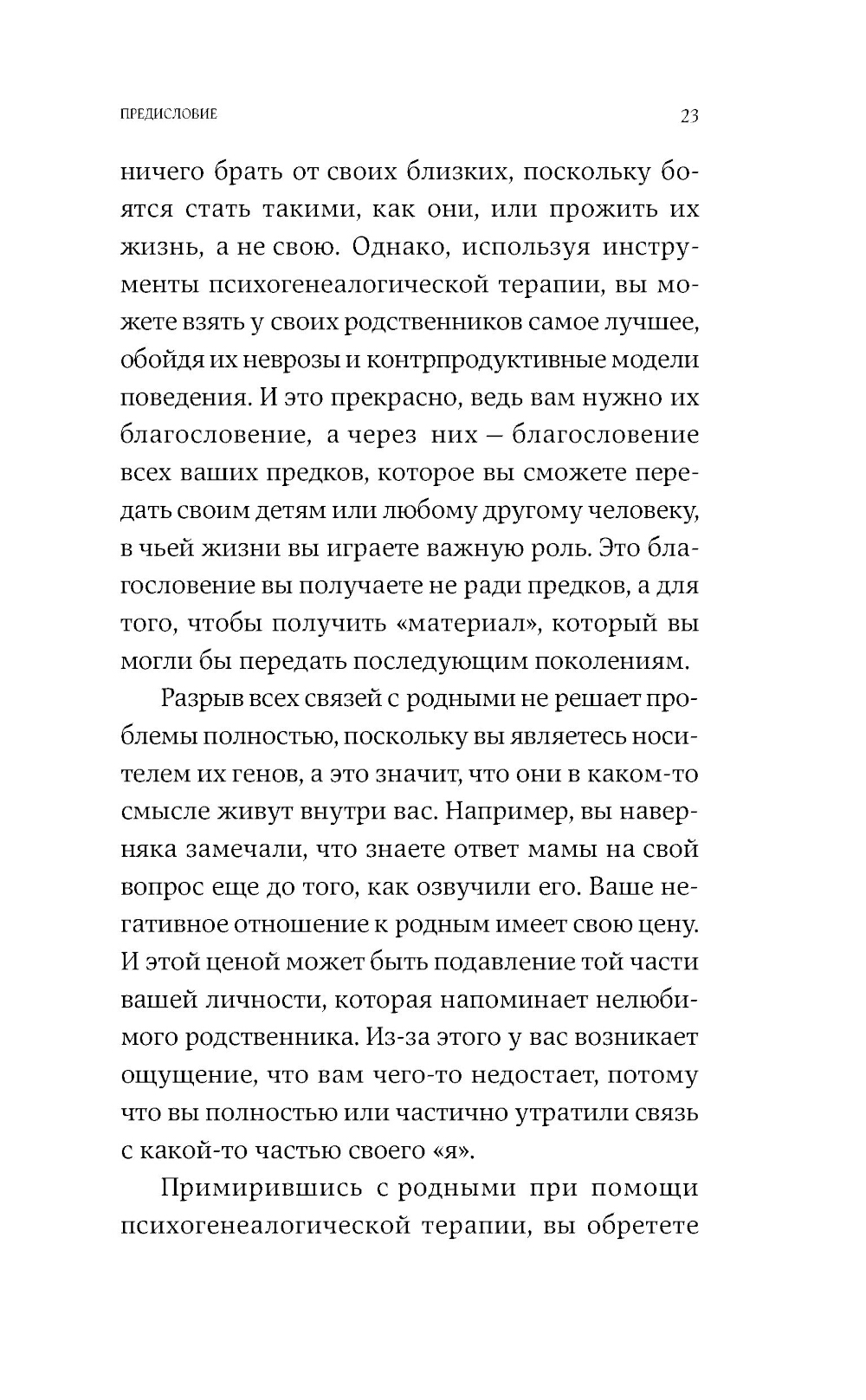 В родственных отношениях не избежать проблем и конфликтов. По разным причинам мы оказываемся неспособными подобрать нужные слова, выразить чувства, понять друг друга. Чтобы научиться жить в гармонии с собой, необходимо прорабатывать конфликты с родственниками, уверена датский психотерапевт и автор нескольких бестселлеров Илсе Санд. В этой книге она рассказывает, как с помощью инструментов психогенеалогической терапии проанализировать чувства и эмоции и помочь себе найти внутреннюю опору - даже если мамы, папы, бабушки или дедушки уже нет рядом. Написание писем от лица родственников, техника пустого стула, разговор с фотографией и другие практики помогут принять собственные чувства и получить поддержку близких - живых и покинувших этот мир, - чтобы излечить душевные раны.| Издательство | Альпина Паблишер |