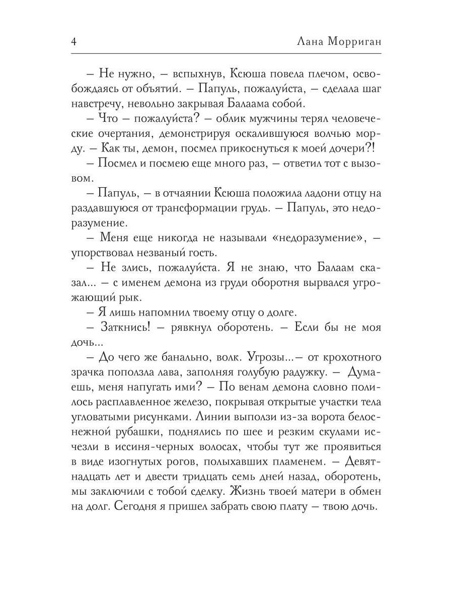 - Девятнадцать лет назад, оборотень, мы заключили сделку. Жизнь твоей матери в обмен на долг. А сегодня я пришел забрать то, что принадлежит мне по праву - твою дочь. Я влюбилась в того, кто имел на меня права с момента моего рождения. Но я не собираюсь становиться игрушкой в его руках. Посмотрим, кто на самом деле будет кем владеть, демон!| Издательство | Т8 RUGRAM |