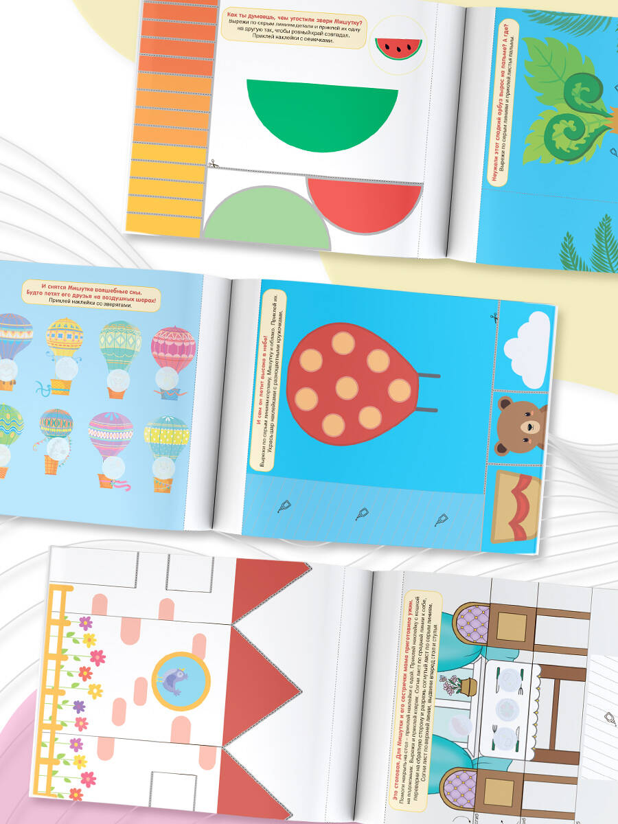 Интересные задания в книге подобраны так, что ребёнок, пошагово, от простого к сложному, учится правильно и безопасно пользоваться ножницами, точно и аккуратно наклеивать, ровно сгибать бумагу и делать объёмные фигурки. Благодаря интересному сюжету и постепенному усложнению заданий, ребёнок, играя, освоит сложный навык работы с бумагой, ножницами и клеем и почувствует уверенность в своих силах. Для выполнения заданий в книге есть наклейки, которые так нравятся малышам.| Издательство | АСТ |
