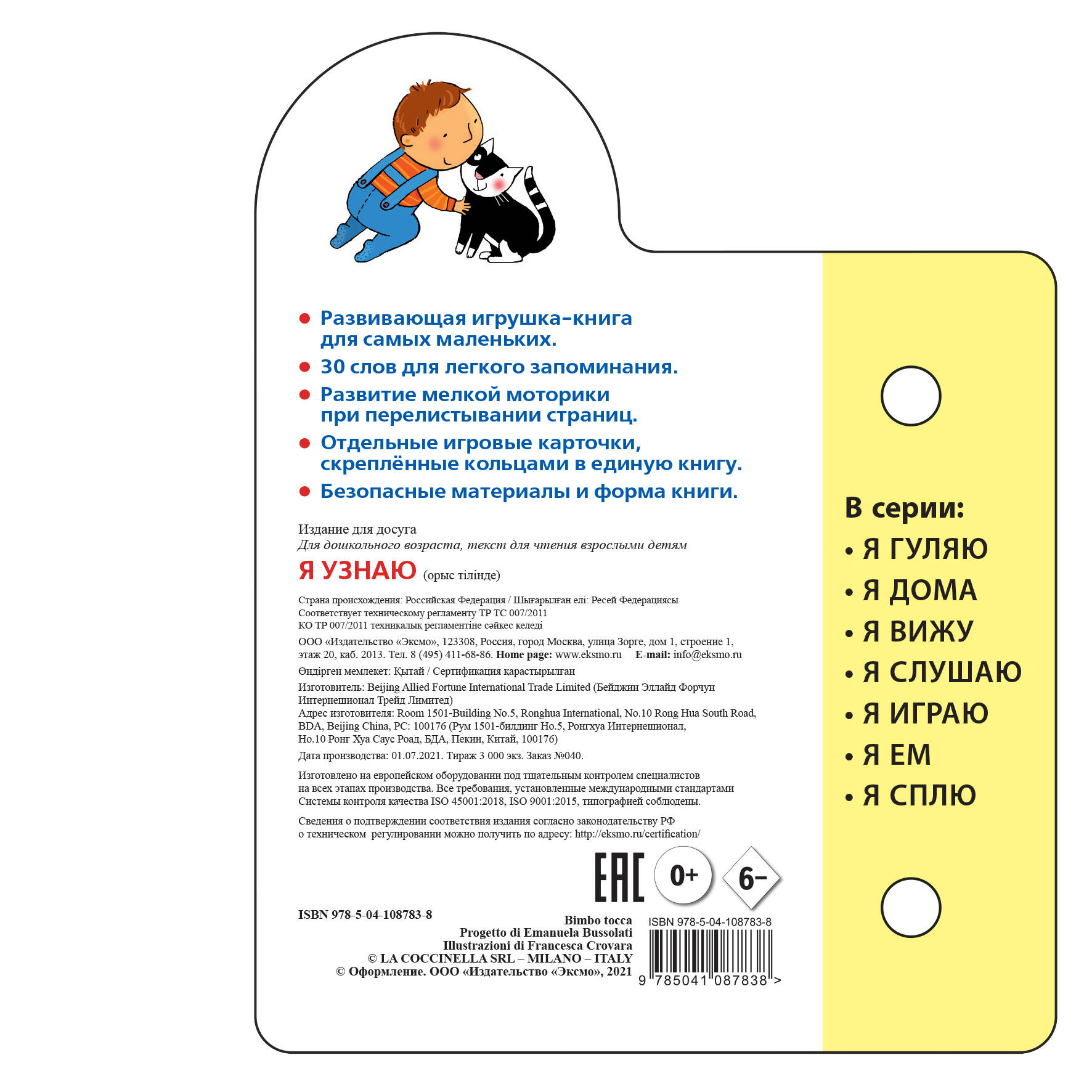 Каждая книга серии «Книжка-игрушка для дома и прогулки» - это целый комплект развивающих игровых карточек, скреплённых кольцами. Она станет отличным спутником вашего малыша в любое время дня! На карточках представлены 30 слов, которые легко запомнить благодаря красочным рисункам. Перебирая странички и играя с кольцами, малыш разовьёт мелкую моторику рук и пальчиков. Эти лёгкие и весёлые книжки можно брать с собой на прогулку: кольца легко и надёжно крепятся к коляске. С книгой «Я узнаю» малыш познакомится с названиями разных предметов окружающего мира, которые он может потрогать.| Издательство | ООО "Издательство "Эксмо" |