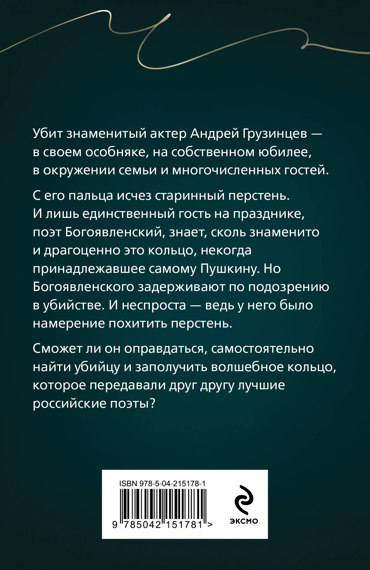 Убит знаменитый актер Андрей Грузинцев - в своем особняке, на собственном юбилее, в окружении семьи и многочисленных гостей. С его пальца исчез старинный перстень. И лишь единственный гость на празднике, поэт Богоявленский, знает, сколь знаменито и драгоценно это кольцо, некогда принадлежавшее самому Пушкину. Но Богоявленского задерживают по подозрению в убийстве. И неспроста - ведь у него было намерение похитить перстень. Сможет ли он оправдаться, самостоятельно найти убийцу и заполучить волшебное кольцо, которое передавали друг другу лучшие российские поэты? Блеск драгоценных камней на протяжении веков очаровывает и застилает глаза. Их сила притяжения такова, что люди порой не останавливаются ни перед чем, стремясь завладеть ими. Тогда это приводит к преступлениям, о которых рассказывают лучшие отечественные детективы из серии «Преступные камни».| Издательство | ООО "Издательство "Эксмо" |