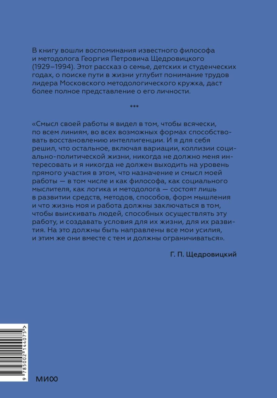 Первая книга многотомного издания «Учение Г. П. Щедровицкого» Воспоминания о выдающихся философах и психологах XX века, о времени и жизни Единственный автобиографический документ Георгия Щедровицкого| Издательство | МАНН, ИВАНОВ И ФЕРБЕР ООО |
