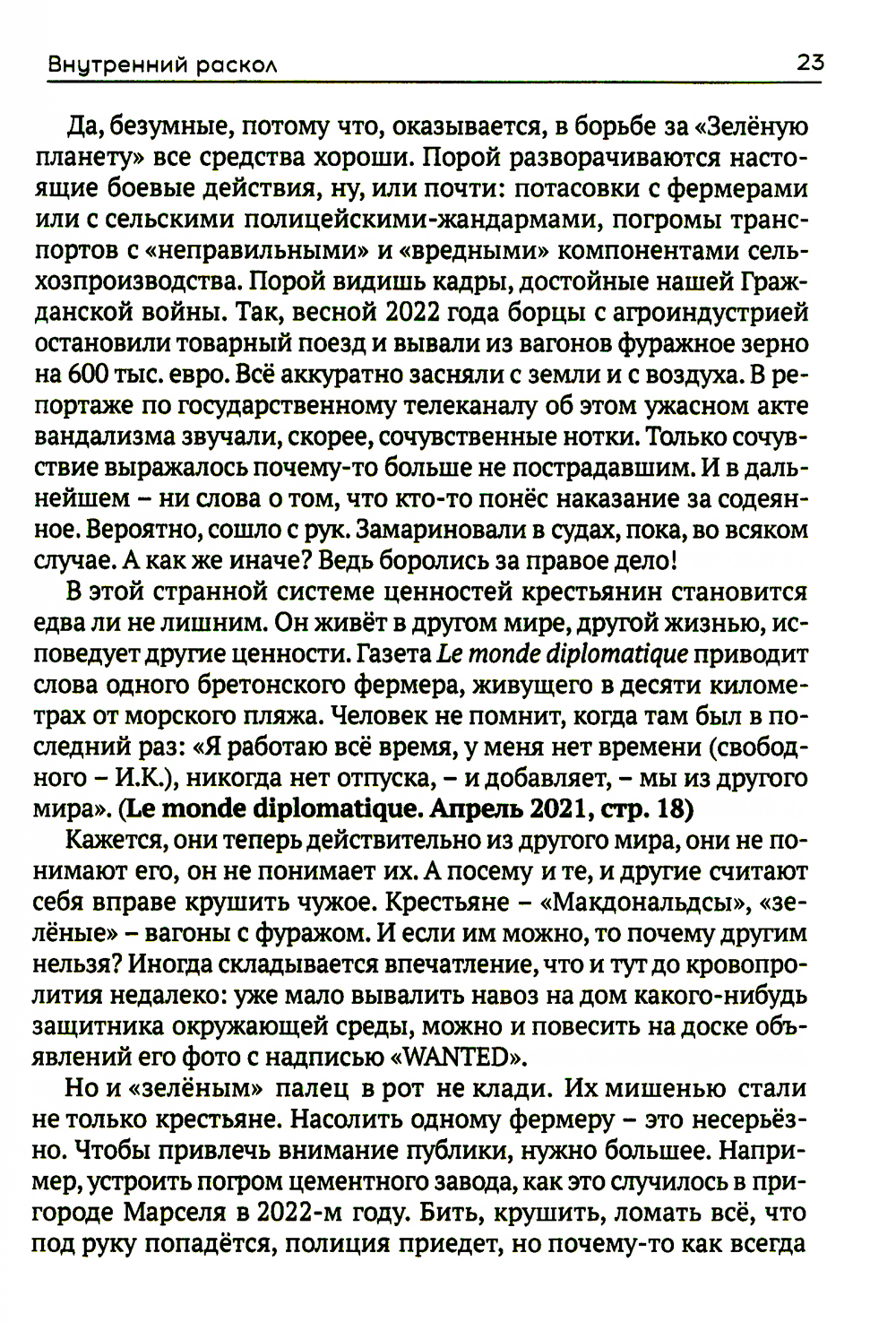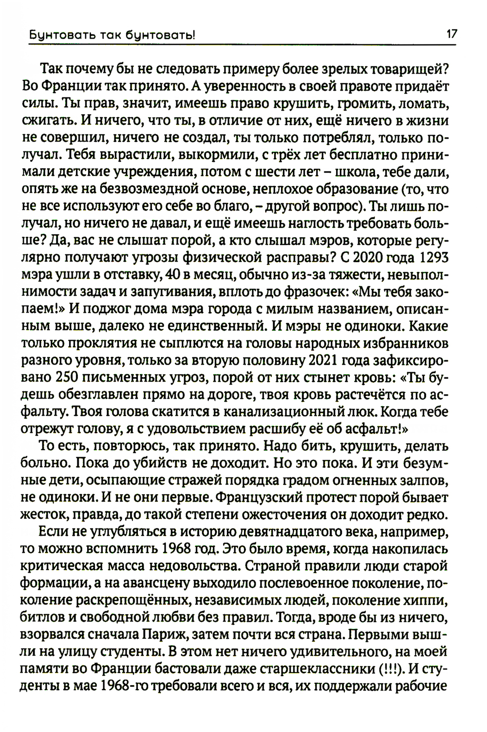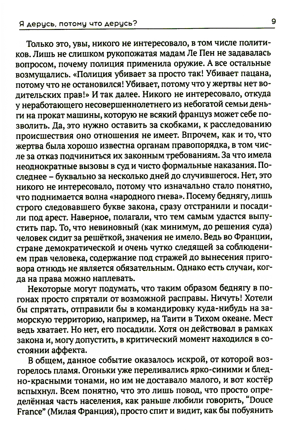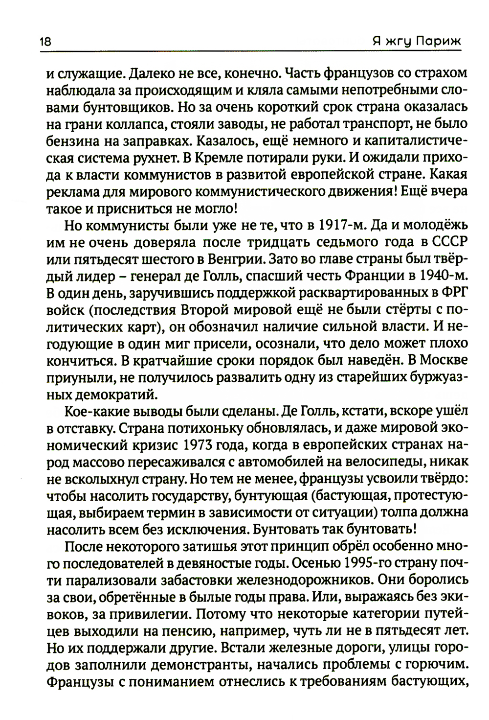 Летом 2023 года во Франции произошло событие, которое привело к активации давно назревающего протеста со стороны части общества. Властям пришлось прибегнуть к жёстким мерам, мобилизовать все силы полиции, чтобы обуздать бунтарей. Почему же так случилось? Что заставило людей выйти на улицы и громить всё, что ранее отождествлялось с государством и порядком? В книге «Я жгу Париж» автор описывает различные аспекты из жизни Франции, которые так или иначе привели к глобальному кризису в стране. В простом повествовании выявляются причинно-следственные связи между сложившейся критической ситуацией и допущенными в прошлом ошибками. Эта книга будет полезна всем, кто хочет разобраться в мотивах протестных действий в обществе на примере отдельно взятой страны, а также понять, куда мы, как человечество, движемся, и что нас ждёт в будущем.| Издательство | Концептуал |