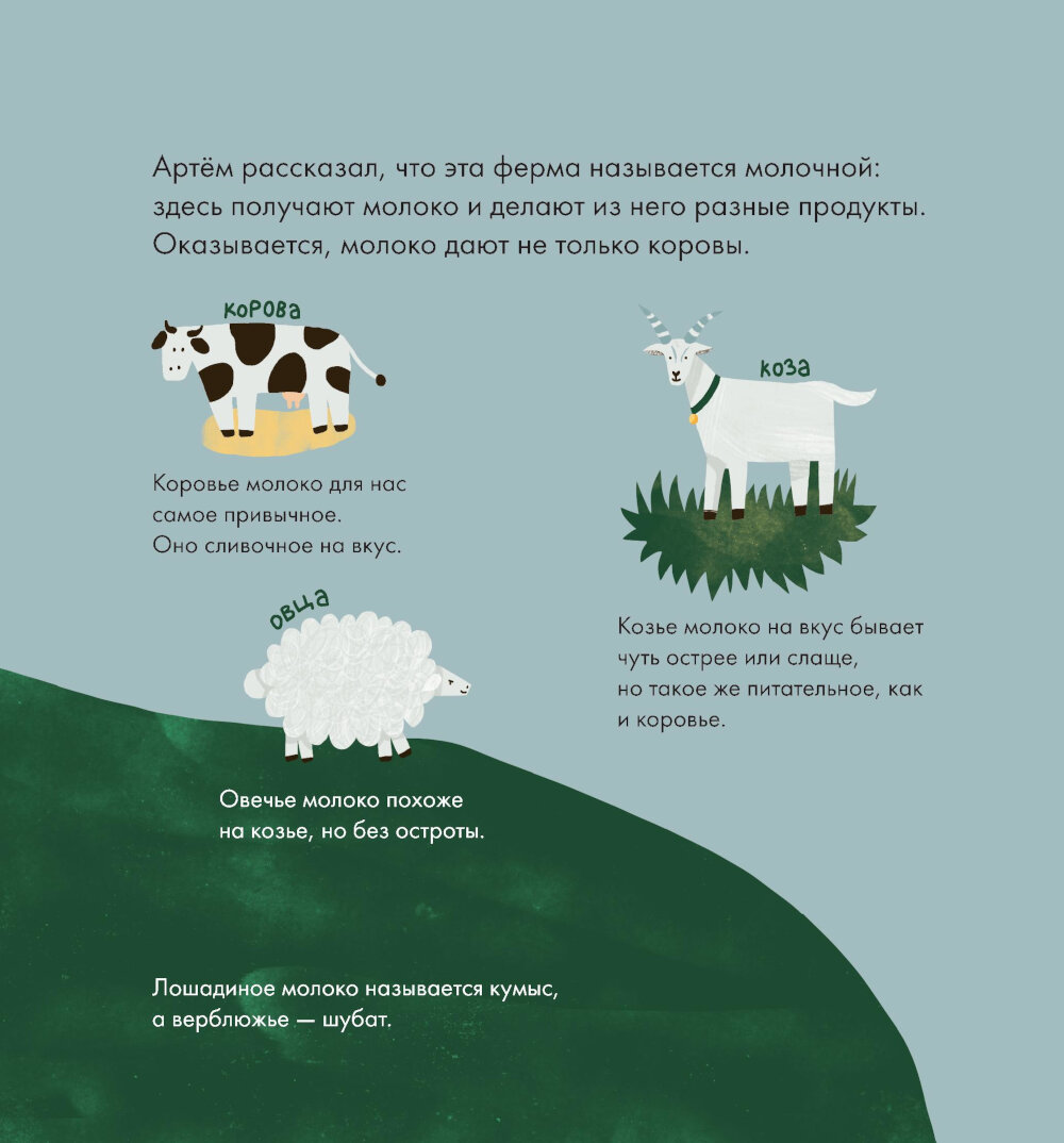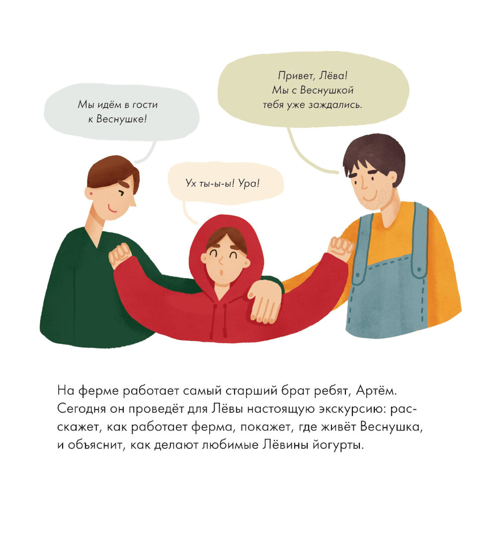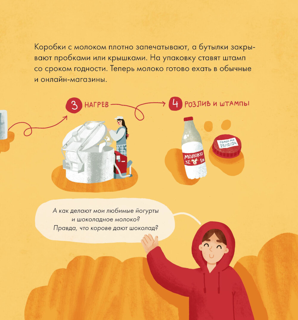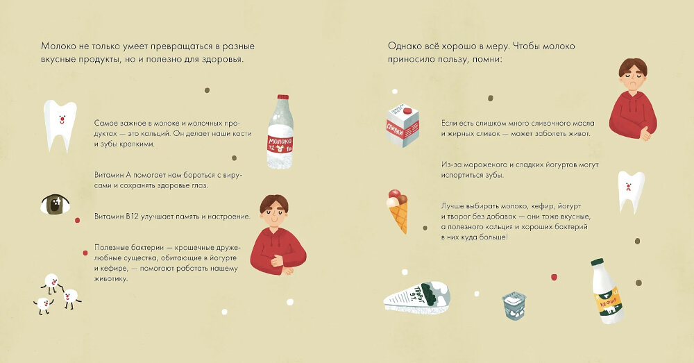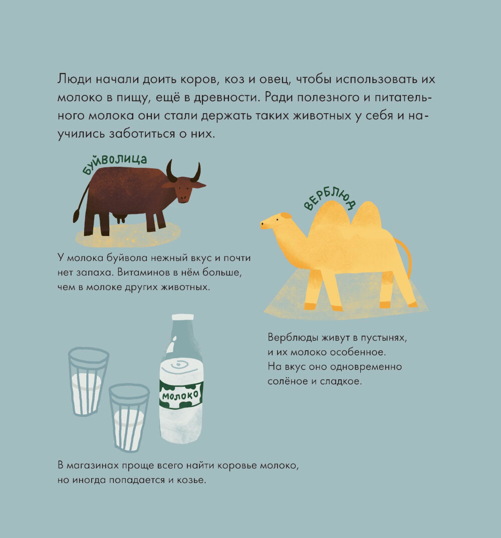 Правда ли, что шоколадное молоко получается, если корове дать шоколад? Эта книга расскажет все о молоке и молочных продуктах. Вместе с главным героем, мальчиком Лёвой, вы попадете на настоящую ферму, и узнаете, как она устроена. А еще выясните, чем коровье молоко отличается от верблюжьего, как делают любимые йогурты, сливочное масло и даже сыр, почему детям обязательно нужно есть молочные продукты, а угощать ими кошек или ежей не стоит. В конце книги есть несколько рецептов из молочных продуктов, а также гид для родителей, который расскажет, как нормировать количество молока в рационе ребенка.