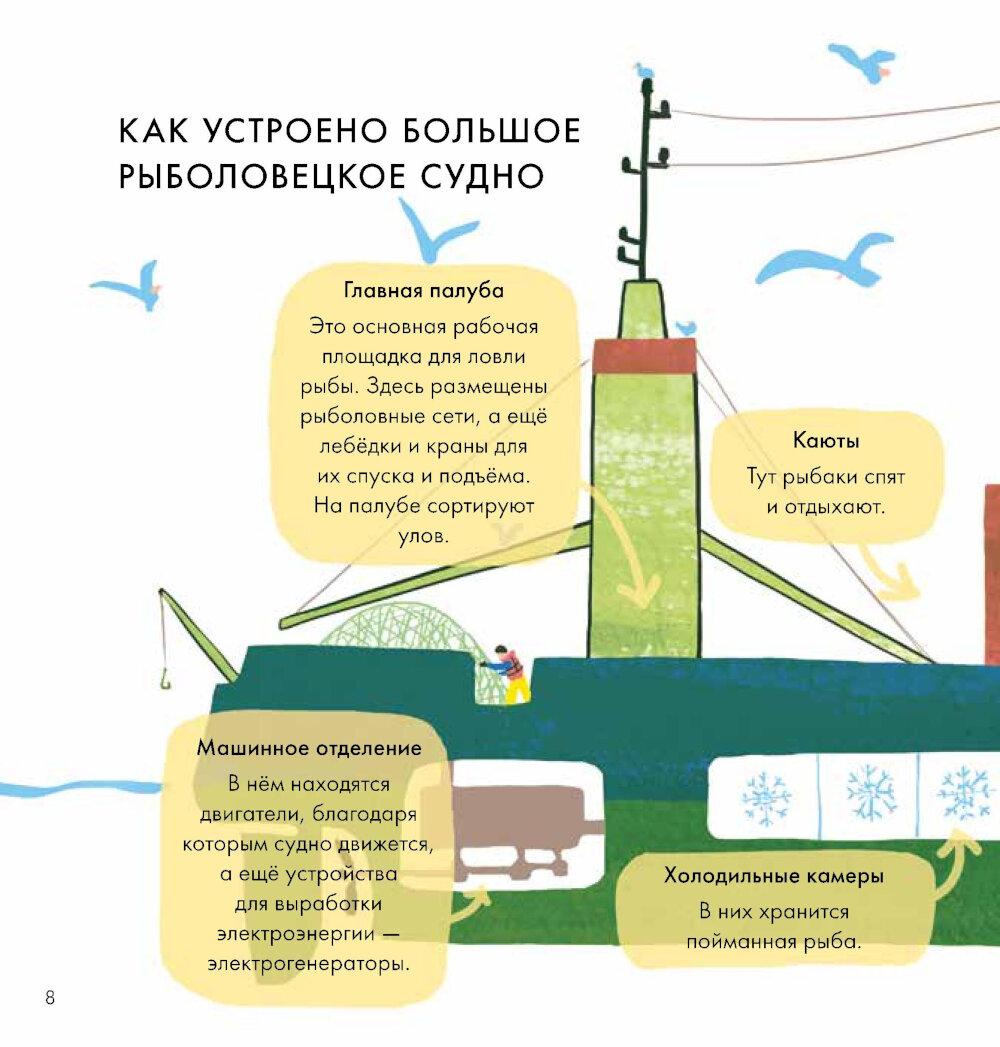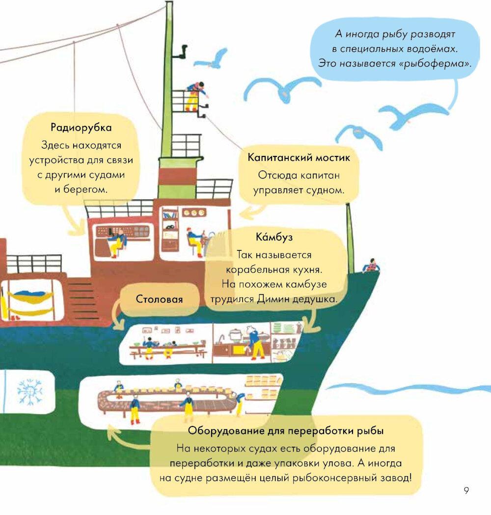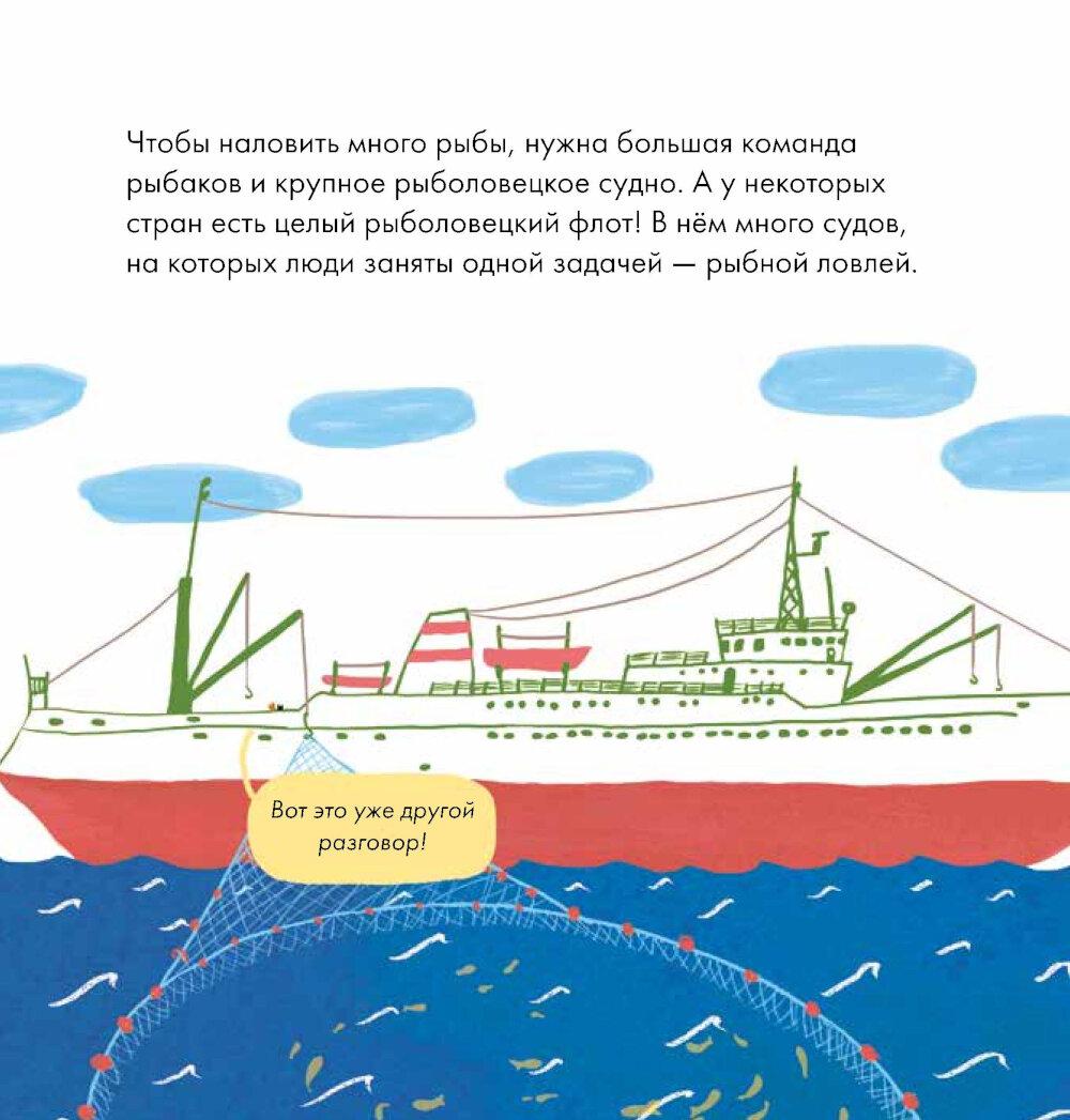 Серия «Я знаю, что я ем» знакомит маленьких читателей с различными продуктами и блюдами и рассказывает, какие они бывают, как их производят и зачем они нужны в нашем рационе. Ребенок получит ответы на свои вопросы о том, почему какую-то еду нужно есть обязательно, а чем-то лучше не злоупотреблять, и тем самым начнет формировать правильные пищевые привычки с раннего возраста. А еще в книге есть несложные рецепты очень вкусных блюд, которые можно приготовить вместе с родителями! Дима приехал в гости к любимому дедушке, который много лет проработал корабельным поваром - коком. Они решили отправиться на настоящую морскую рыбалку на дедушкином баркасе. В этом небольшом путешествии Дима не только узнает о том, как ловят рыбу и как устроены рыболовецкие суда, но и разберётся, какая бывает рыба, чем же она так полезна для организма и, конечно, какие интересные блюда из неё можно приготовить. А после рыбалки попробует сварить уху по вкуснейшему дедушкиному рецепту.