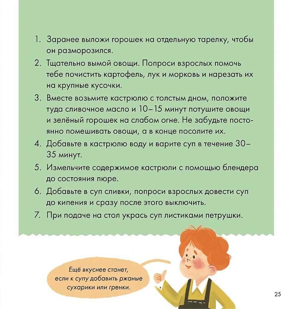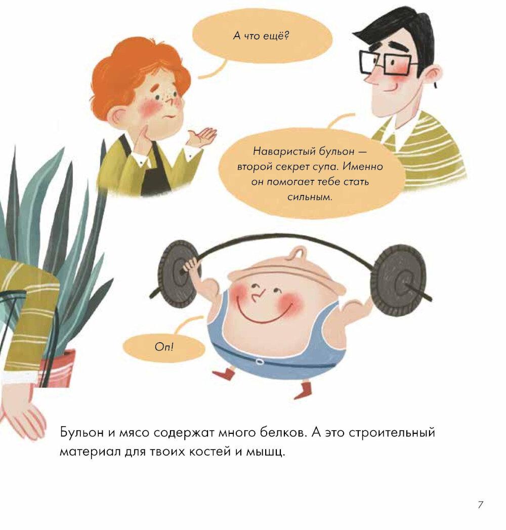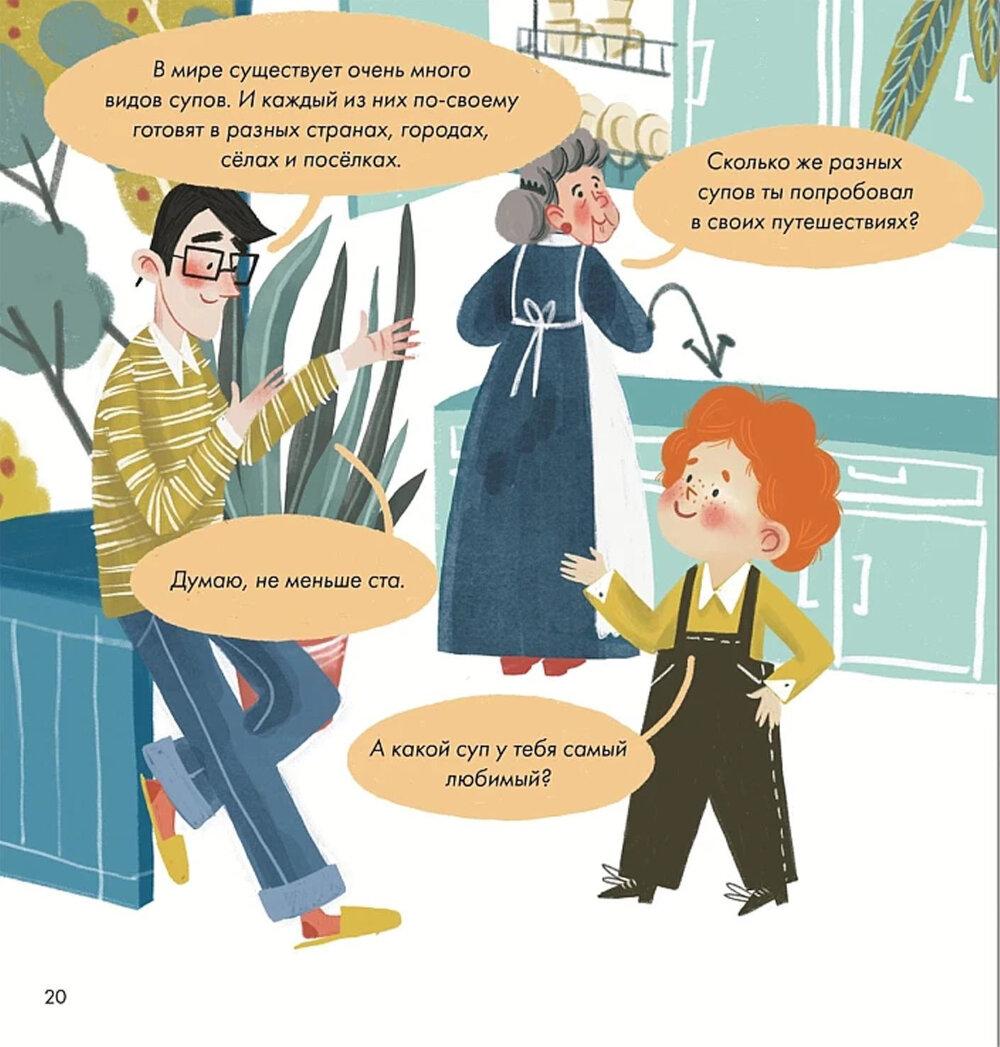 Серия «Я знаю, что я ем» знакомит маленьких читателей с различными продуктами и блюдами и рассказывает, какие они бывают, как их производят и зачем они нужны в нашем рационе. Ребенок получит ответы на свои вопросы о том, почему какую-то еду нужно есть обязательно, а чем-то лучше не злоупотреблять, и тем самым начнет формировать правильные пищевые привычки с раннего возраста. А еще в книге есть несложные рецепты очень вкусных блюд, которые можно приготовить вместе с родителями! Сегодня у Пети праздник: в гости к бабушке приехал его любимый дядя-путешественник. Но как же Петя удивился, когда на праздничный стол бабушка поставила... супницу! Разве же это блюдо для особого повода? Вот только оказалось, что Петин дядя - настоящий знаток и любитель супов. Путешествуя, он обязательно везде пробует местные супы. Дядя расскажет Пете о том, какие бывают супы, что они могут поведать о культуре и быте каждого народа, почему считаются такими полезными и, конечно, зачем же их обязательно нужно есть.| Издательство | Альпина Паблишер |