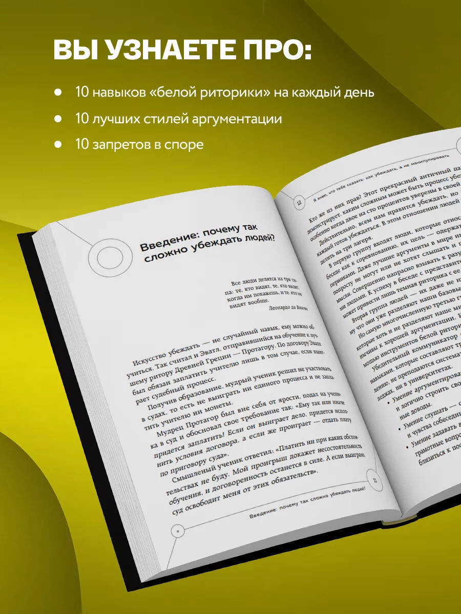 Самый простой способ получить желаемое на переговорах - играть вчестную, считает автор этой книги. Владислав Яхтченко, бизнес-тренер по ораторскому искусству, автор бестселлера «Темное влияние», входит в ТОП-10 лучших докладчиков на мероприятиях TEDx-Redner. Он предлагает в любой коммуникации руководствоваться принципами «белой риторики», которые ведут не к разовой победе, а к долгосрочному сотрудничеству. Автор также делится целым арсеналом инструментов, чтобы вы научились быстро находить аргументы, слышать собеседника и задавать правильные вопросы. Благодаря этой книге вы узнаете про: - 10 навыков «белой риторики» на каждый день; - 10 лучших стилей аргументации; - 10 запретов в споре. ОТЗЫВ: «На удивление структурная книга с НОВЫМИ действенными инструментами переговоров. Практично. Свежо. Ёмко. Отличная база для дополнительного обучения руководителей и переговорщиков». - Петр Кудасов, спикер «Деловой Среды» Сбера, автор книги «У меня все свои. 33 инструмента, которые помогают завести полезные связи и реализоваться в карьере»| Издательство | ООО "Издательство "Эксмо" |