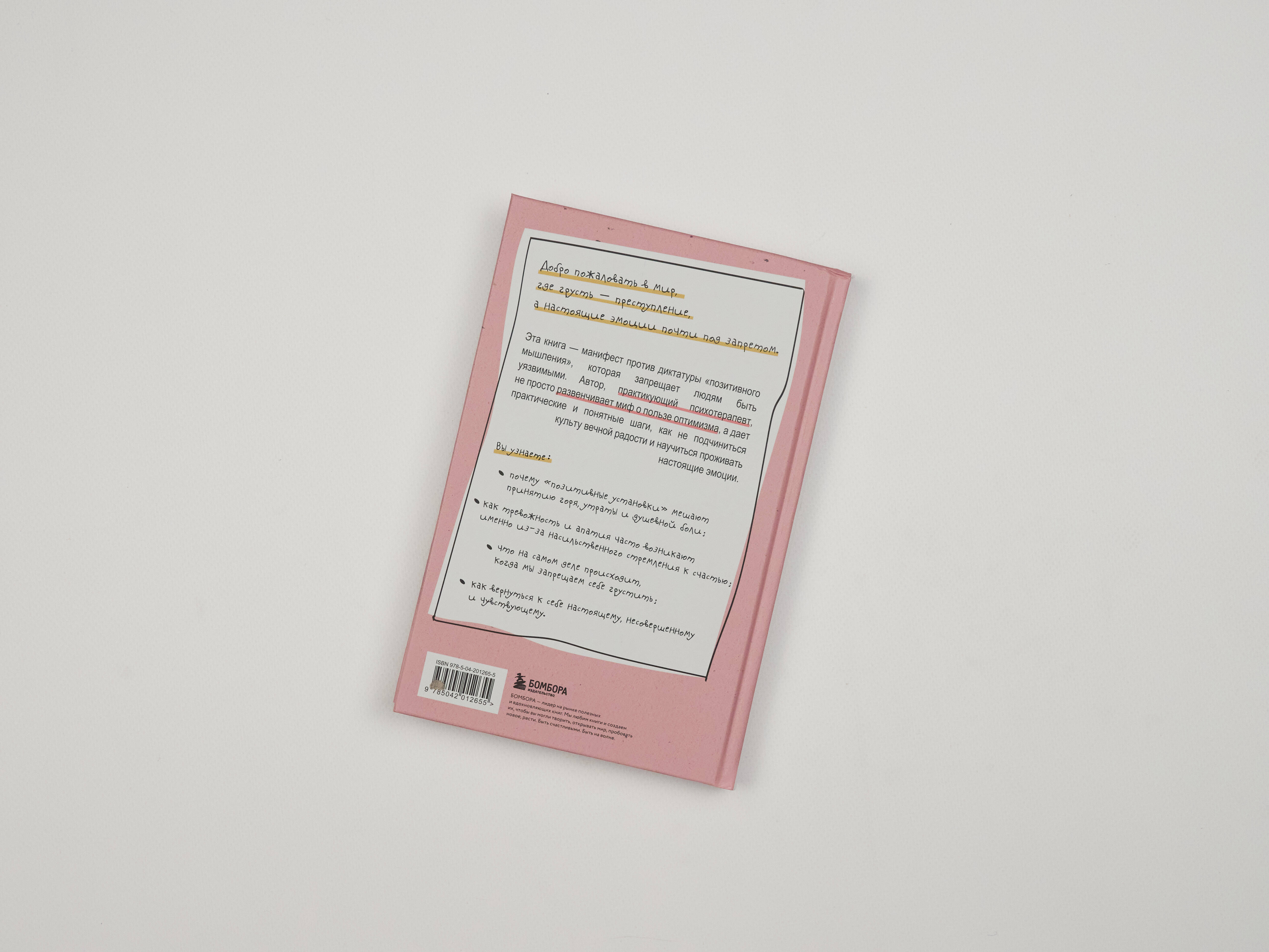 Добро пожаловать в мир, где грусть - преступление, а настоящие эмоции почти под запретом. Эта книга - манифест против диктатуры «позитивного мышления», которая запрещает людям быть уязвимыми. Автор, практикующий психотерапевт, не просто развенчивает миф о пользе оптимизма, а дает практические и понятные шаги, как не подчиниться культу вечной радости и научиться проживать настоящие эмоции. Вы узнаете: - Почему «позитивные установки» мешают принятию горя, утраты и душевной боли. - Как тревожность и апатия часто возникают именно из-за насильственного стремления к счастью. - Что на самом деле происходит, когда мы запрещаем себе грустить. - Как вернуться к себе - настоящему, несовершенному и чувствующему.| Издательство | ООО "Издательство "Эксмо" |