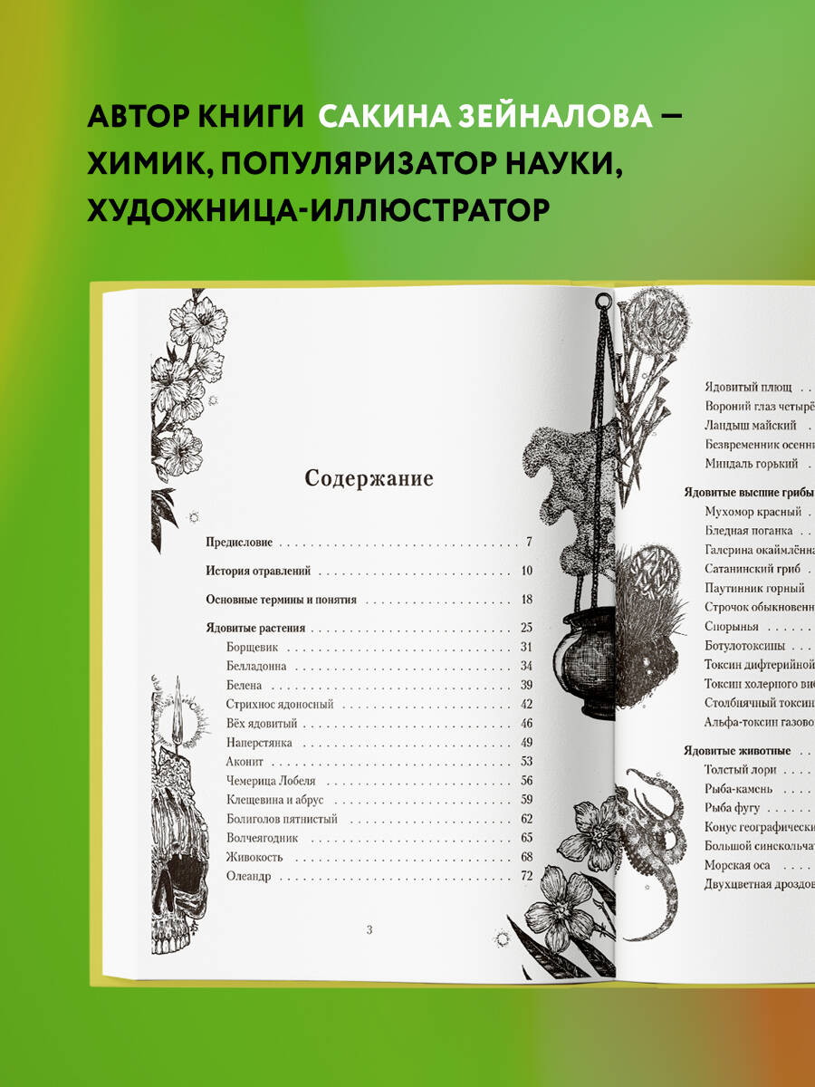 Вы держите в руках не просто книгу про яды, а иллюстрированный сборник самых опасных веществ на планете и историй о них. В книге собрано более 80 авторских графических иллюстраций. Здесь вы найдете не только истории отравлений, но и формулы самих ядовитых веществ и механизмы их действия. Возможно, это самая красивая книга о смертельных соединениях. Автор книги - Сакина Зейналова, химик, популяризатор науки, художник-иллюстратор.| Издательство | ООО "Издательство "Эксмо" |