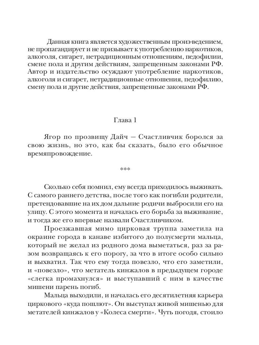 Ягор по прозвищу Дайч - Счастливчик, прозванный так не от хорошей жизни. Еще в возрасте пяти лет он должен был умереть в канаве у обочины дороги, куда его избитого до полусмерти выбросили родичи. Он выжил. В дальнейшем же Счастливчик только подтверждал это свое прозвище, выживал там, где гибли поодиночке и группами более опытные охотники на монстров, чем он сам. И даже когда, казалось, все, закончилось везение и закончился его жизненный путь - он снова выкрутился. Оказался в другом, странном мире, где нет монстров, враждебных людям рас, а магия считается сказкой. И как награда - здесь у него появилась большая семья и появилась реальная возможность осуществить все то, о чем он мечтал и к чему готовился всю свою прошлую жизнь.| Издательство | Т8 RUGRAM |
