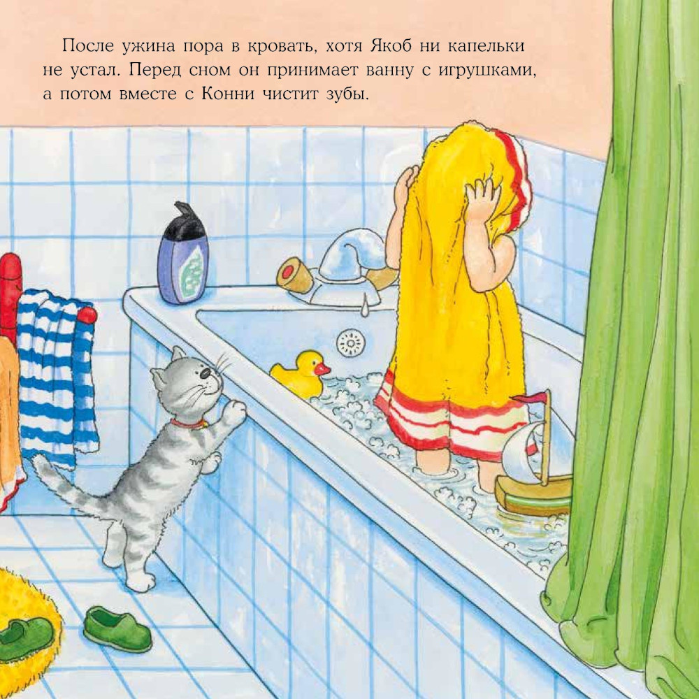 Малыши часто не хотят укладываться спать: столько игр не доиграно, столько историй недослушано. Привычные вечерние ритуалы, спокойные игры и сказка на ночь помогут уложить даже самых бодрых непосед. Вместе с Якобом ваш малыш придумает собственный ритуал отхода ко сну и научится засыпать самостоятельно.| Издательство | Альпина Паблишер |