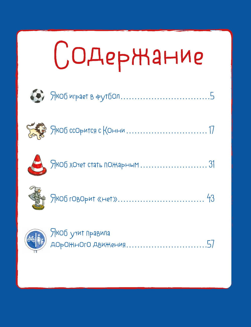 Ура! Наконец-то появился большой сборник рассказов о Якобе, братике Конни. Внутри вас ждет десять лучших историй для самых храбрых малышей. Вместе с Якобом ваш ребенок выучит правила дорожного движения, полюбит спортивные игры, а еще научится справляться со злостью и мириться. В сборник вошли следующие истории: - Якоб играет в футбол - Якоб ссорится с Конни - Якоб говорит нет - Якоб учит правила дорожного движения - Якоб хочет стать пожарным - Якоб злится - Якоб на ферме - Якоб на детской площадке - Якоб и беговел - Якоб всё делает сам| Издательство | Альпина Паблишер |