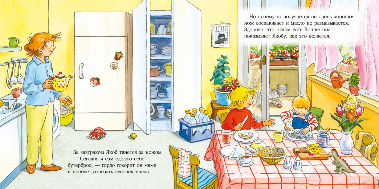 Якоб считает, что он уже большой и может делать всё сам: и порядок в комнате навести, и завтрак себе сделать, и даже вместо мамы купить всё необходимое в магазине. Правда, сказку на ночь никто лучше родителей рассказать не может.