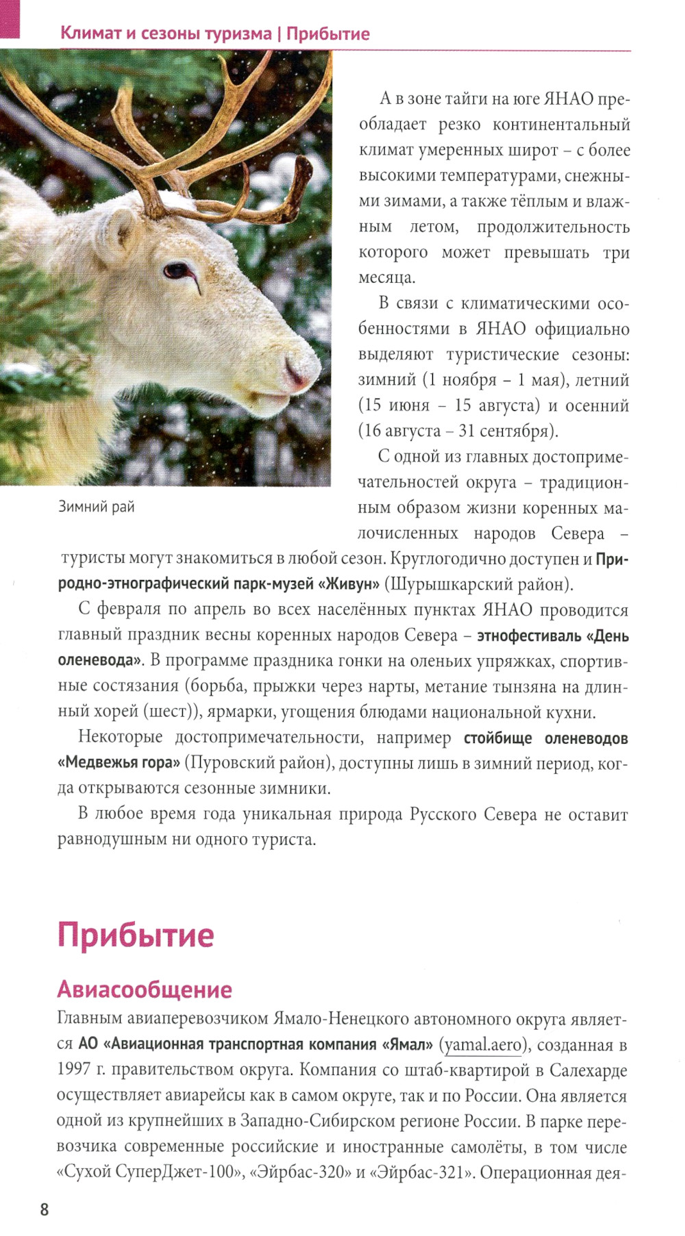 Ямало-Ненецкий автономный округ - гостеприимный, богатый красками и удивляющий видами регион, с присущей ему самобытностью и природным великолепием. Ямал встречает гостей своим уникальным суровым климатом и массой возможностей для отдыха. Он утолит любое желание туриста: от возможности совершить восхождение на горные вершины и сплавиться по быстрым горным рекам до ночёвки в настоящем чуме с коренными малочисленными народами Крайнего Севера, охоты и прогулки по всем местным достопримечательностям любого городка Ямала. Народы Крайнего Севера обучат своим традиционным ремёслам. 50 тысяч рек и 300 тысяч озёр, которые занимают значительную часть полуострова доказывают, что это отличное место для любителей рыбалки. В наших реках можно без особого труда поймать щуку, пыжьяна, налима, леща и т. д. Музеи Ямала с удовольствием познакомят вас с историей региона и с древними млекопитающими, вымершими много лет назад - с мамонтами. Мумия одного из них хранится в первом музее на Полярном круге - Музейно-выставочном комплексе имени Ивана Семёновича Шемановского. Ямальские деликатесы придутся по нраву любителям гастрономического туризма: диетическая оленина с целебными свойствами и сырая тонко нарезанная строганина из мяса рыбы не оставят никого равнодушными. Уважаемые гости округа, приехав на Ямал впервые, вы захотите вернуться и окунуться в культуру и гостеприимство местных жителей снова и снова. А мы, жители «Края Земли», в свою очередь постараемся сделать ваше пребывание на Ямале незабываемым.| Издательство | Аякс-Пресс |