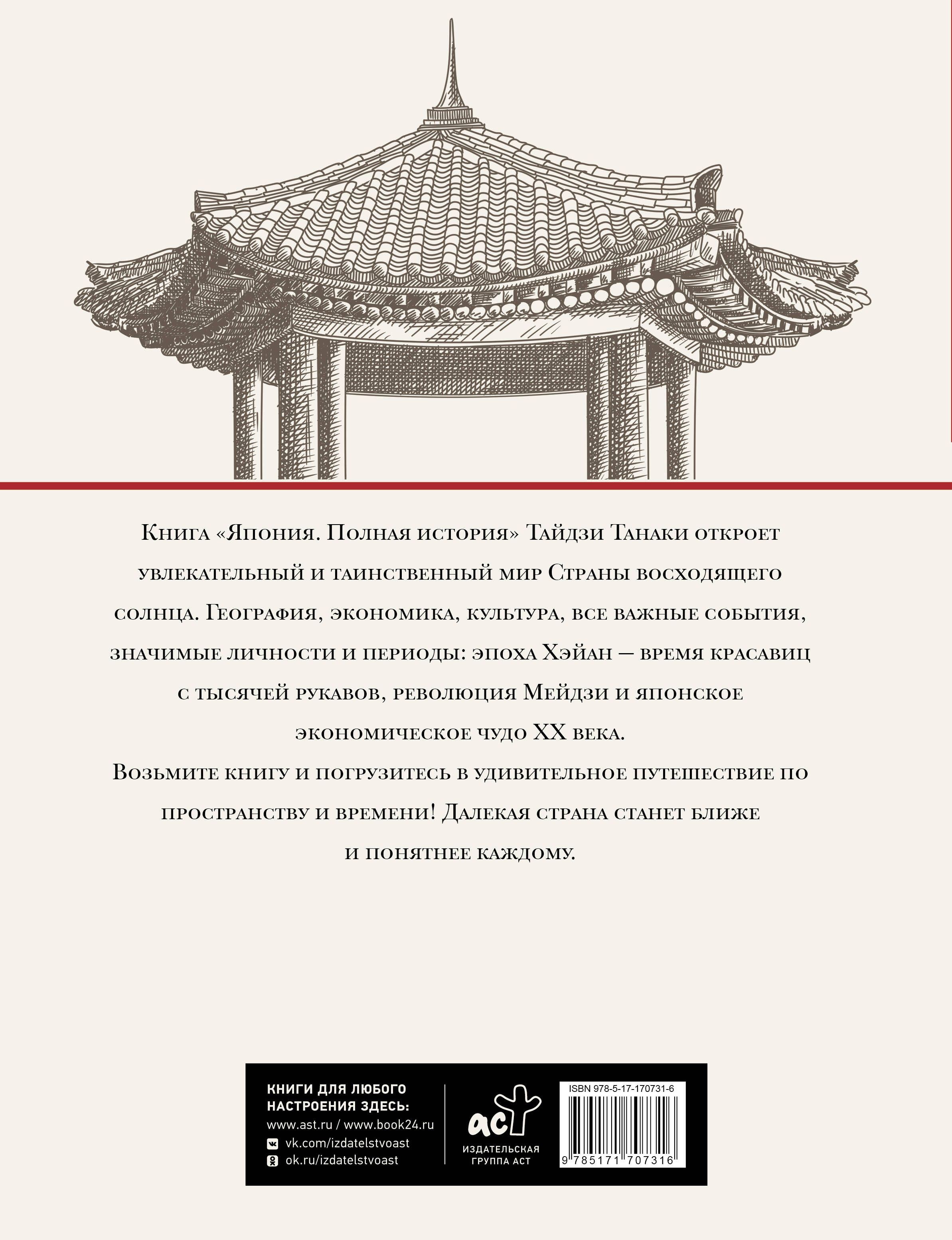 Книга "Япония. Полная история" Тайдзи Танаки откроет увлекательный и таинственный мир Страны восходящего солнца. География, экономика, культура, все важные события, значимые личности и периоды: эпоха Хэйан - время красавиц с тысячей рукавов, революция Мейдзи и японское экономическое чудо XX века. Возьмите книгу и погрузитесь в удивительное путешествие по пространству и времени! Далекая страна станет ближе и понятнее каждому.| Издательство | Издательство "АСТ" |