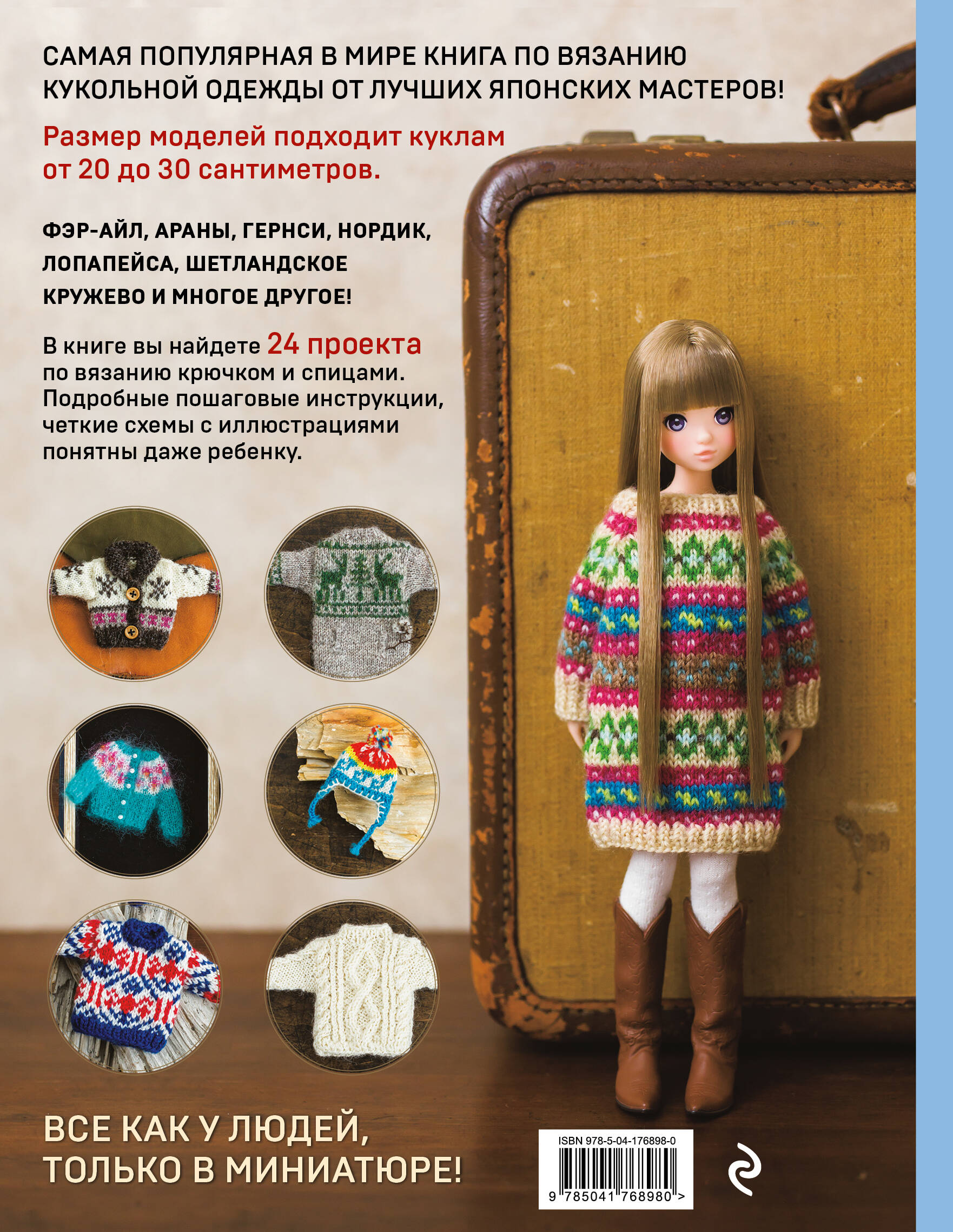 Связать кукольную одежду по этой книге сможет даже ребенок! Представленные модели совсем как у людей, только в миниатюре! При желании все можно пропорционально увеличить и получить настоящий свитер, кардиган, шапку и многое другое. Внутри: - 24 проекта для вязания крючком и спицами. - 11 известных мировых техник. - Подробные пошаговые схемы. - Советы по выбору инструментов и пряжи.| Издательство | ООО "Издательство "Эксмо" |