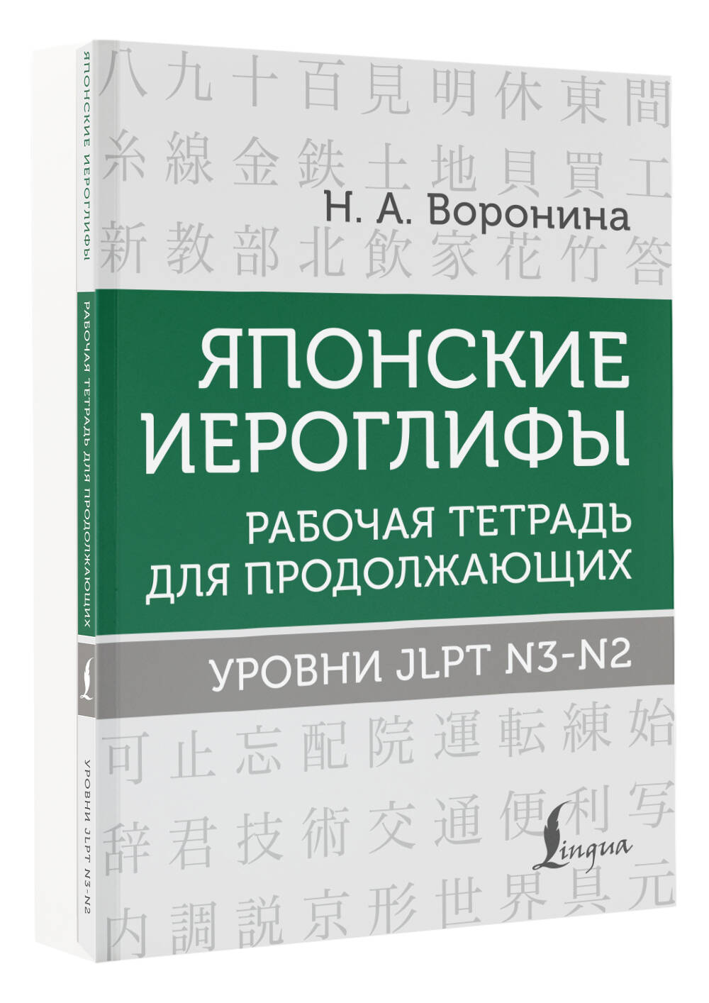 Нина Альбертовна Воронина - дипломированный специалист по международным отношениям стран Азии и Африки, занимающийся вопросами экономики Японии и японского языка. Выступает с открытыми лекциями о культуре Японии под псевдонимом "Востоковедьма". Данное пособие включает в себя все иероглифы, необходимые для успешной сдачи международного экзамена по японскому языку уровней JLPT N3-N2. К каждому иероглифу даны чтения (верхнее и нижнее), значения и примеры, а также показан правильный порядок написания черт в иероглифах. Чтения подписаны каной. Верхние чтения (он, онъёми) написаны катаканой, а нижние (кун, кунъёми) - хираганой. Подчеркнутая часть нижнего чтения - это та часть слова, которая "выносится" за пределы кандзи, то есть пишется азбукой при смешанном письме. Рабочая тетрадь адресована тем, кто продолжает изучать японский язык и японскую письменность и намерен сдать международный экзамен на уровни N3 или N2. Пособие можно использовать не только для отработки навыков письма, но и для систематизации знаний и увеличения лексического запаса.
