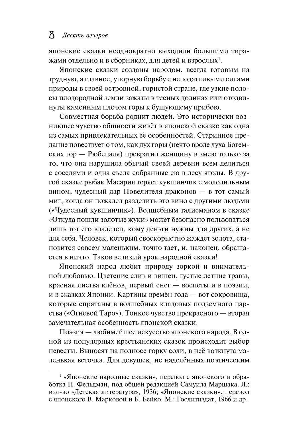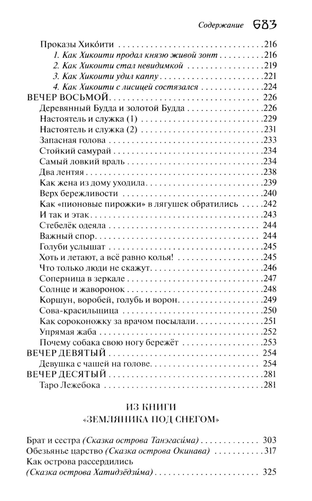 Собрание японских сказок и легенд в одной книге. Это повествования о различных чудесах - добрых и страшных, смешных и грустных, лукавых и назидательных и всегда поражающих своей оригинальностью и эмоциональной глубиной. В них читатель, большой и маленький, познакомится с проказливыми лешими - тэнгу и водяными - каппа, прекрасными девами-птицами и женщинами-змеями, коварными оборотнями - лисами и барсуками, весельчаком и балагуром Хикоити. Увлекательные предания старины, вошедшие в мировую сокровищницу сказок, собраны и переведены известнейшим филологом-японистом В. Н. Марковой, чьи переводы удостоены награды в самой Стране Восходящего Солнца. Книга содержит вступительную статью, подробные комментарии.| Издательство | Эксмо |