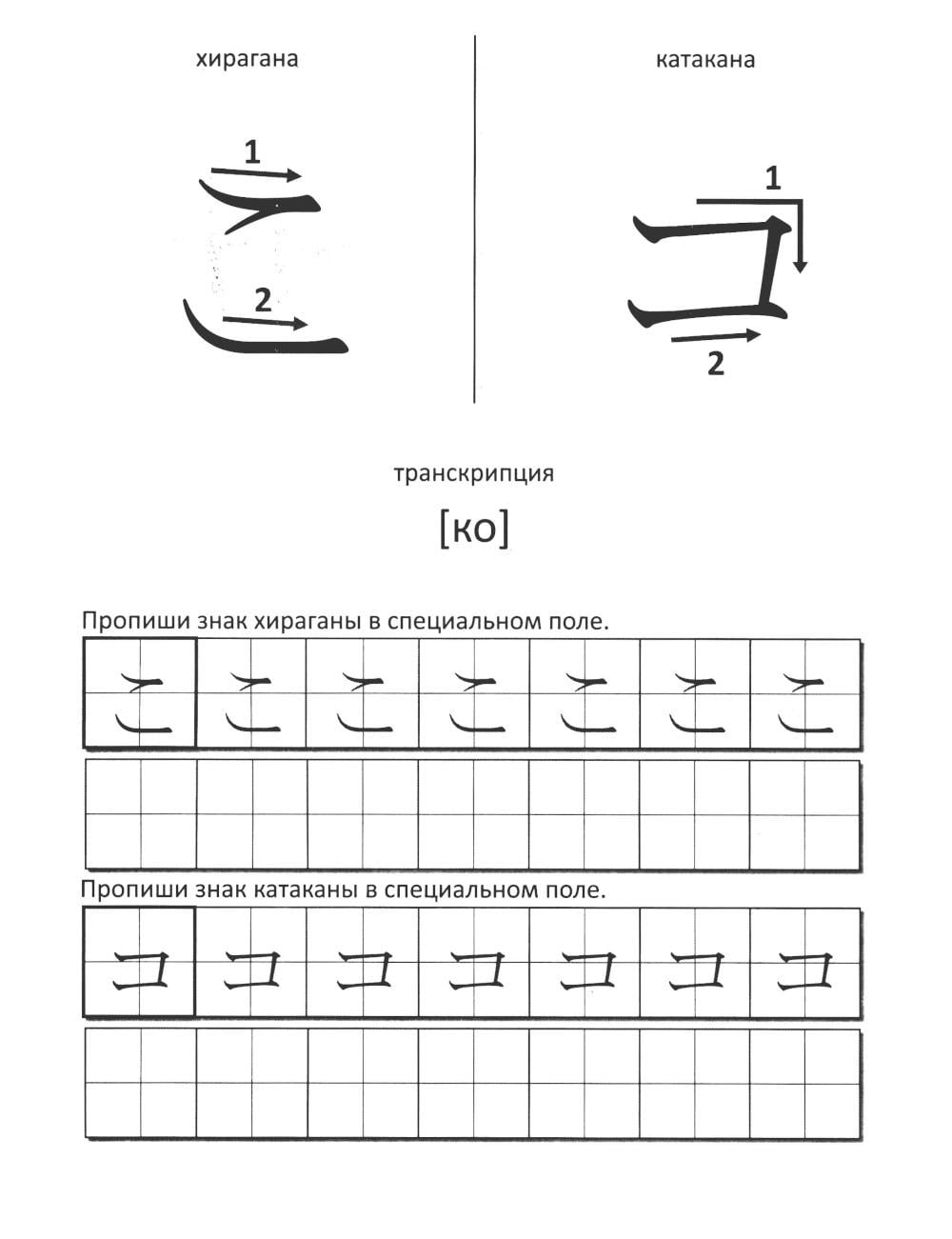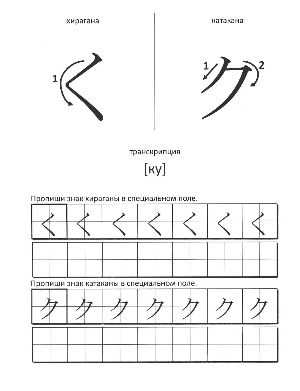 Данные прописи - универсальный тренажёр для тех, кто хочет освоить японскую письменность. Изучите пошаговую схему записи знаков хираганы и катаканы, потренируйте написание и выполните задания.