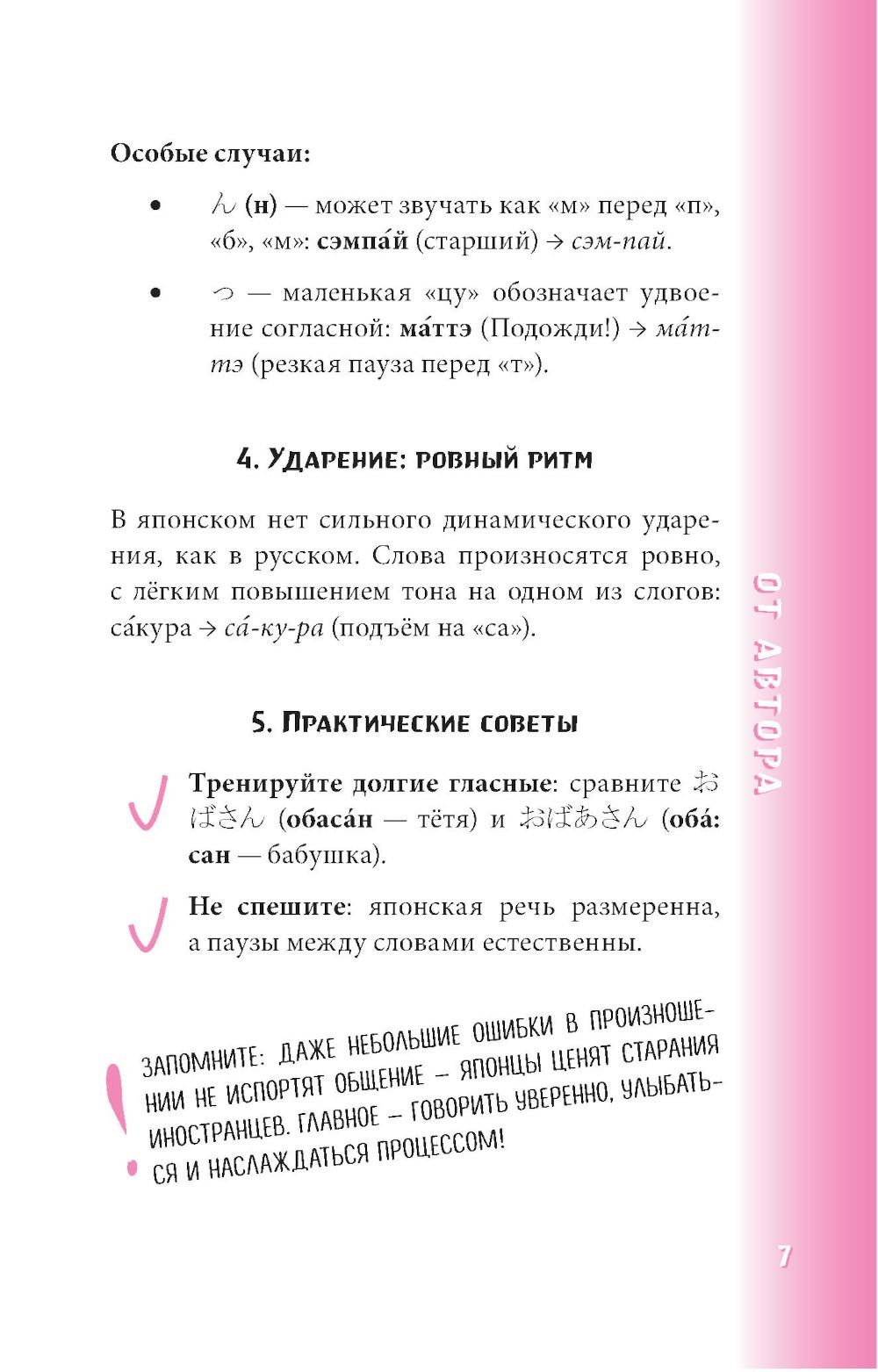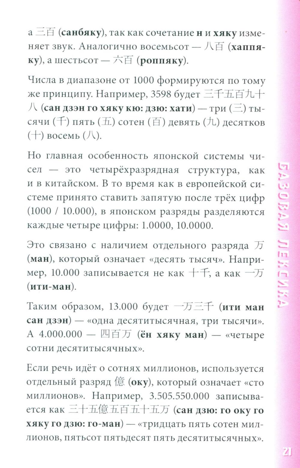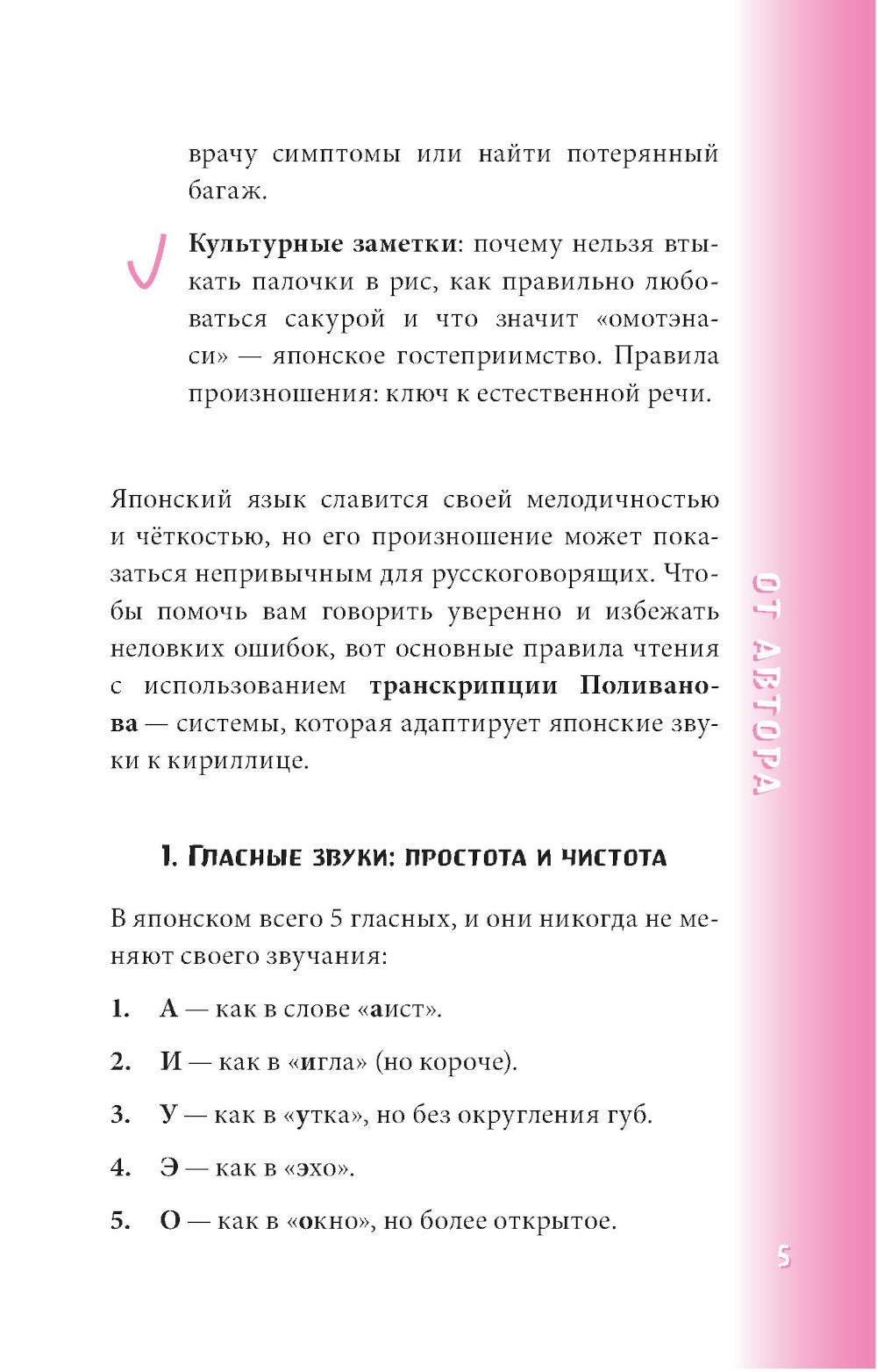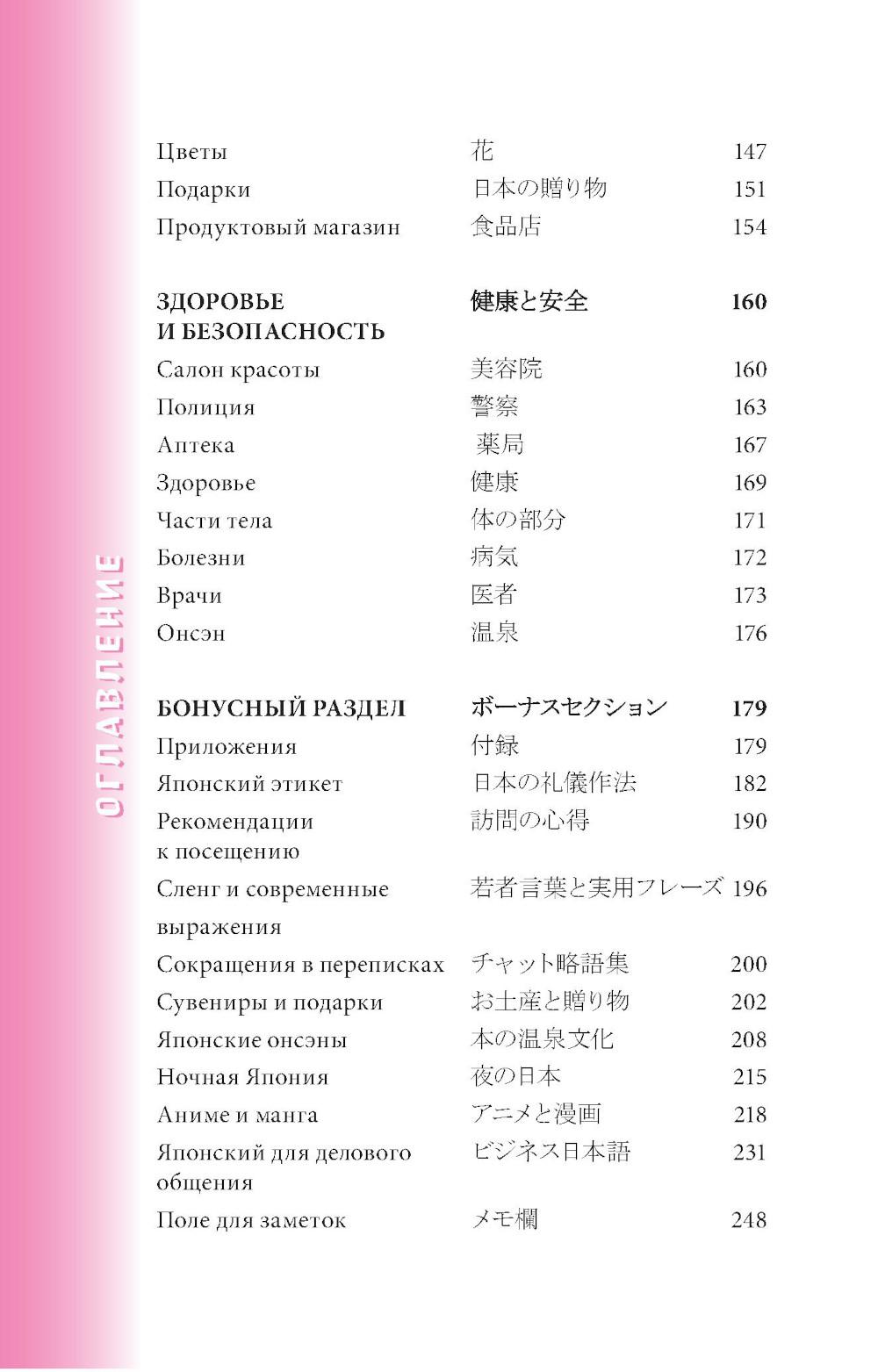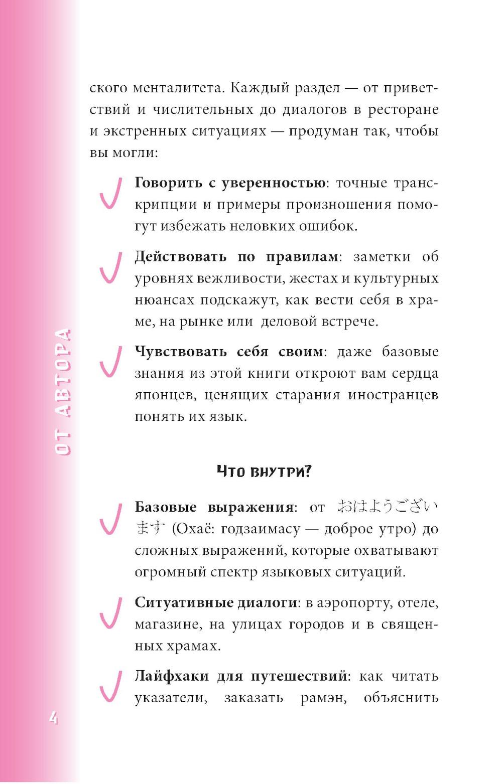 Начни говорить на японском уже сейчас! Японский разговорник поможет изъясниться за границей в различных ситуациях: будь то заказ обеда в ресторане либо поход в аптеку. Разговорник включает в себя множество тем и выражений, снабжённых транскрипцией на кириллице по системе Поливанова. Небольшой формат, гибкая обложка и закруглённые уголки, - всё делает разговорник идеальным карманным помощником! Предназначен для смелых путешествий в Японию, а также послужит отличным пособием для самостоятельного развития разговорного языка.