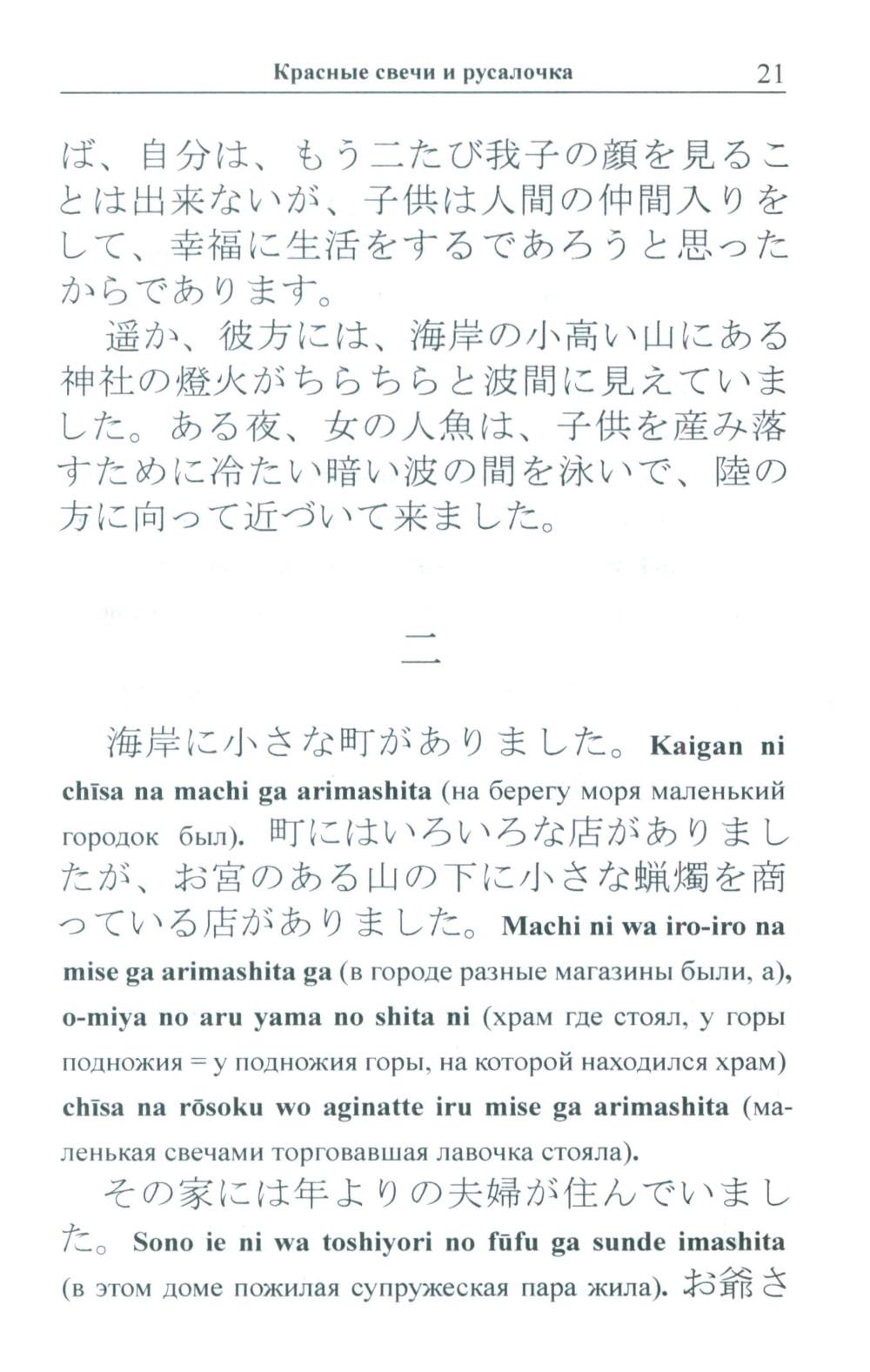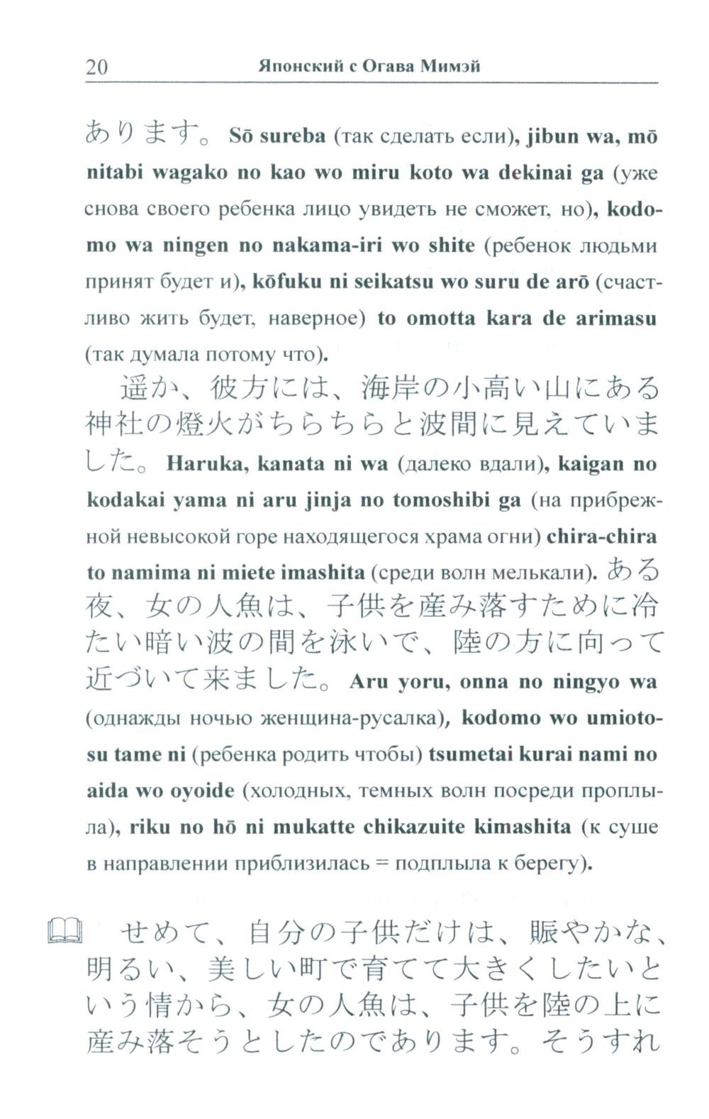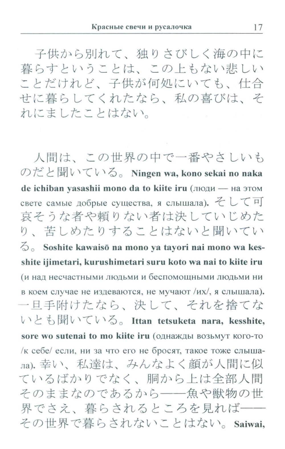 Избранные сказки «японского Андерсена» Огава Мимэй, исполненные, подобно произведениям великого датчанина, поэзии и глубокого философского смысла, адаптированы в настоящем издании по методу Ильи Франка: снабжены транскрипцией, дословным переводом на русский язык и необходимым лексико-грамматическим комментарием. Уникальность метода заключается в том, что запоминание слов и выражений происходит за счет их повторяемости, без заучивания и необходимости использовать словарь. Пособие способствует эффективному освоению языка, может служить дополнением к учебной программе. Для широкого круга лиц, изучающих японский язык и интересующихся японской культурой.| Издательство | Восточная книга |