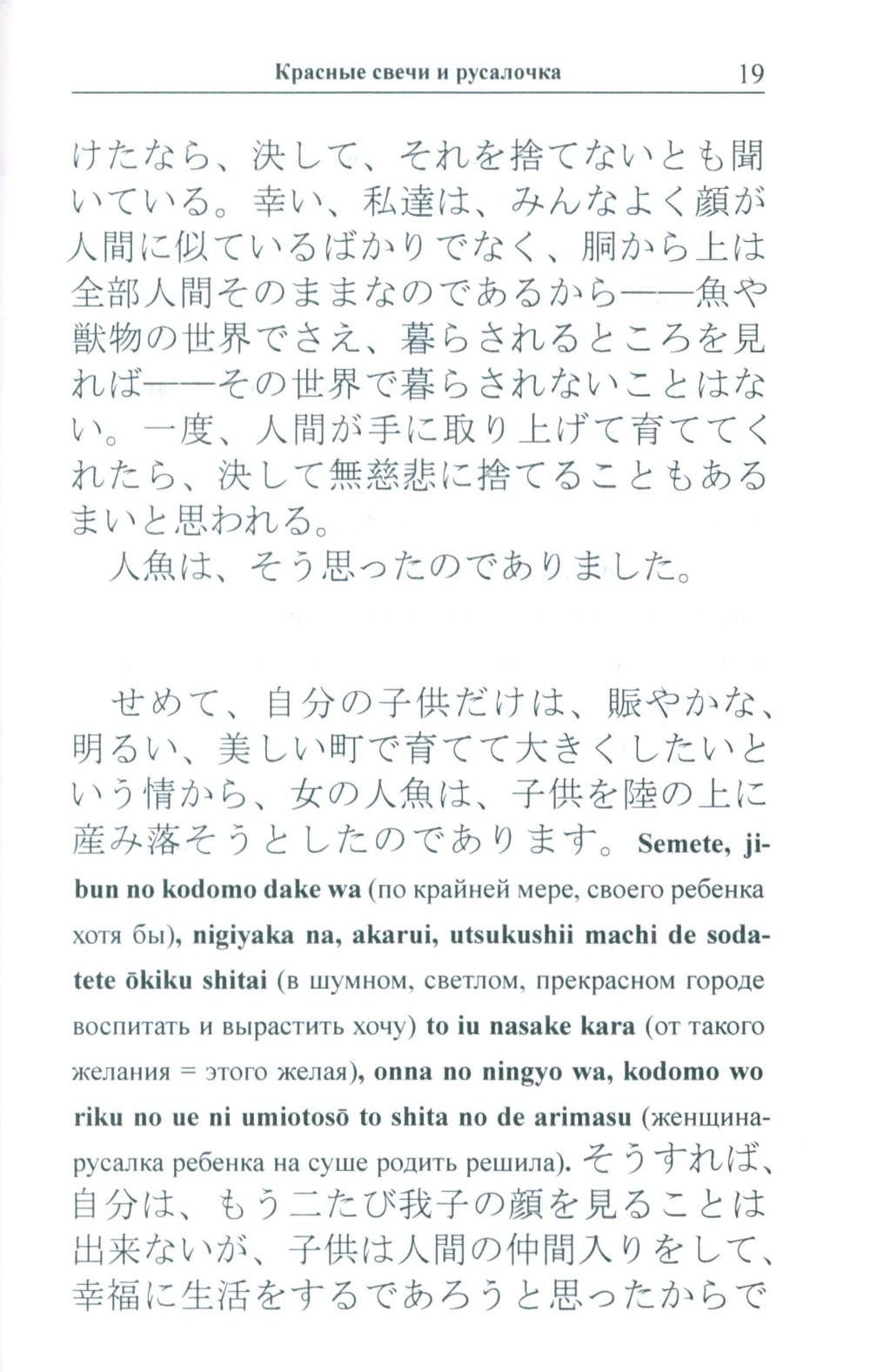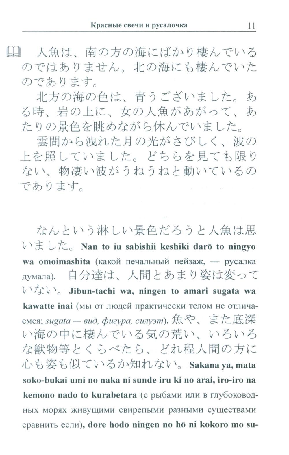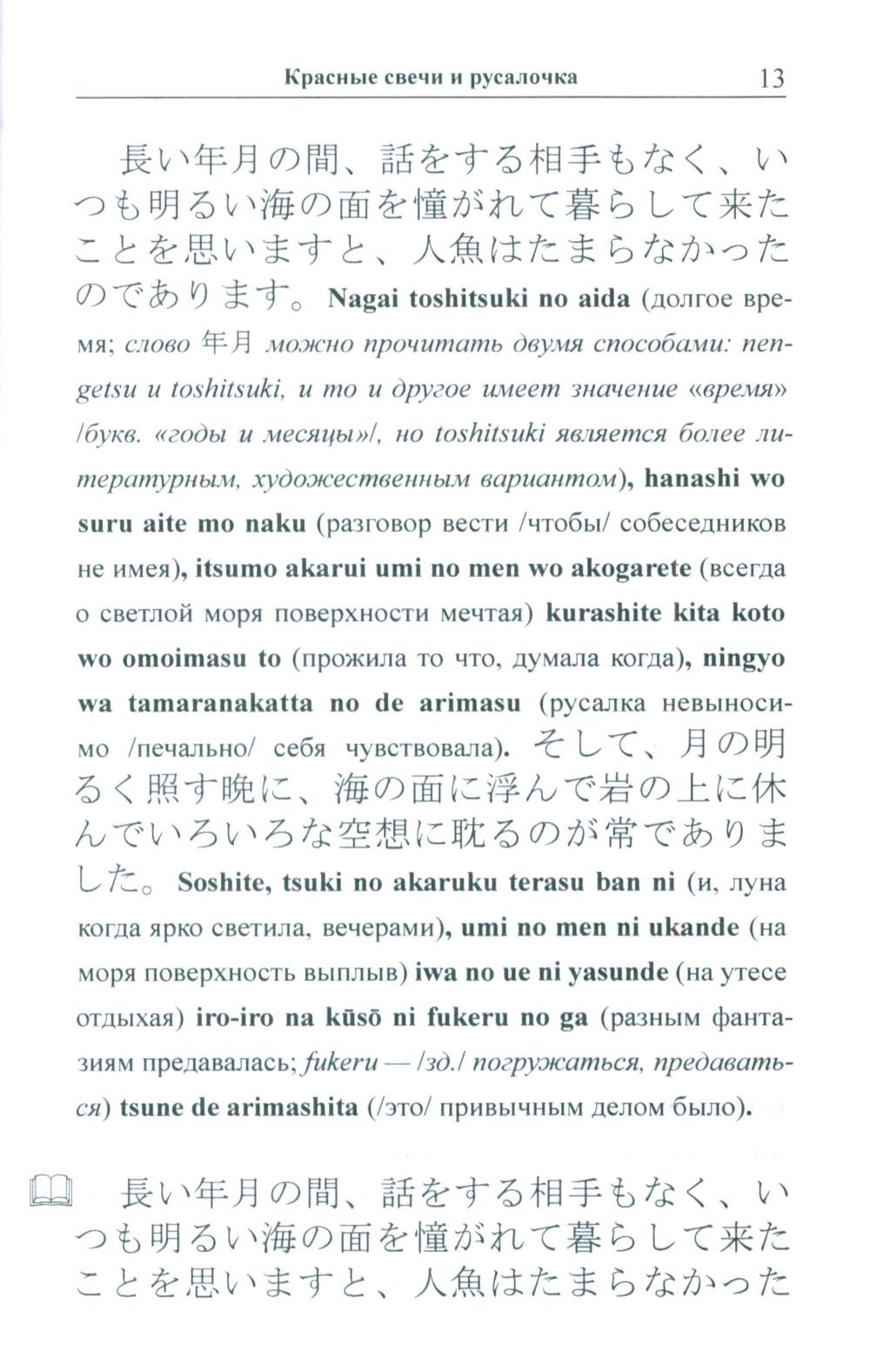 Избранные сказки «японского Андерсена» Огава Мимэй, исполненные, подобно произведениям великого датчанина, поэзии и глубокого философского смысла, адаптированы в настоящем издании по методу Ильи Франка: снабжены транскрипцией, дословным переводом на русский язык и необходимым лексико-грамматическим комментарием. Уникальность метода заключается в том, что запоминание слов и выражений происходит за счет их повторяемости, без заучивания и необходимости использовать словарь. Пособие способствует эффективному освоению языка, может служить дополнением к учебной программе. Для широкого круга лиц, изучающих японский язык и интересующихся японской культурой.| Издательство | Восточная книга |