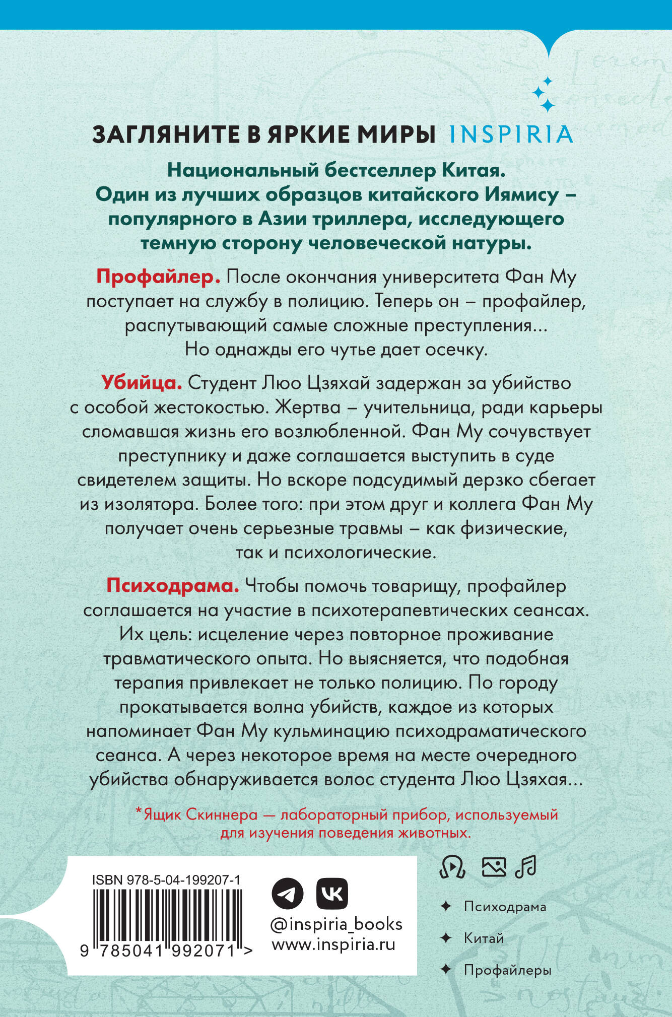 НАЦИОНАЛЬНЫЙ БЕСТСЕЛЛЕР КИТАЯ ОТ ПРЕПОДАВАТЕЛЯ КРИМИНАЛЬНОЙ ПСИХОЛОГИИ В УНИВЕРСИТЕТЕ УГОЛОВНОЙ ПОЛИЦИИ. ОДИН ИЗ ЛУЧШИХ ОБРАЗЦОВ КИТАЙСКОГО ИЯМИСУ - ПОПУЛЯРНОГО В АЗИИ ТРИЛЛЕРА, ИССЛЕДУЮЩЕГО ТЕМНУЮ СТОРОНУ ЧЕЛОВЕЧЕСКОЙ НАТУРЫ. ЗДЕСЬ ПСИХОЛОГИЯ СТАНОВИТСЯ ИГРОЙ, ИГРА - КВЕСТОМ, А КВЕСТ - СМЕРТЬЮ... Профайлер. После окончания университета Фан Му поступает на службу в полицию. Теперь он - профайлер, распутывающий самые сложные преступления… Но однажды его чутье дает осечку. Убийца. Студент Люо Цзяхай, задержан за убийство с особой жестокостью. Жертва - учительница, ради карьеры сломавшая жизнь его возлюбленной. Фан Му сочувствует преступнику и даже соглашается выступить в суде свидетелем защиты. Но вскоре подсудимый дерзко сбегает из изолятора. Более того: при этом друг и коллега Фан Му получает очень серьезные травмы - как физические, так и психологические. Психодрама. Чтобы помочь товарищу, профайлер соглашается на участие в психотерапевтических сеансах. Их цель: исцеление через повторное проживание травматического опыта. Но выясняется, что подобная терапия привлекает не только полицию. По городу прокатывается волна убийств, каждое из которых напоминает Фан Му кульминацию психодраматического сеанса. А через некоторое время на месте очередного убийства обнаруживается волос студента Люо Цзяхая…| Издательство | ООО "Издательство "Эксмо" |