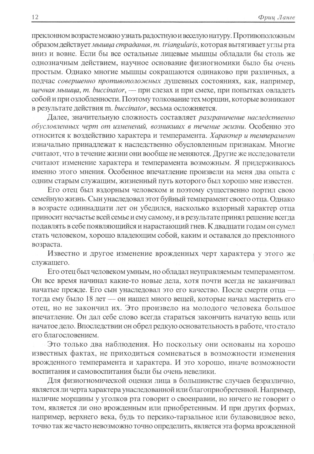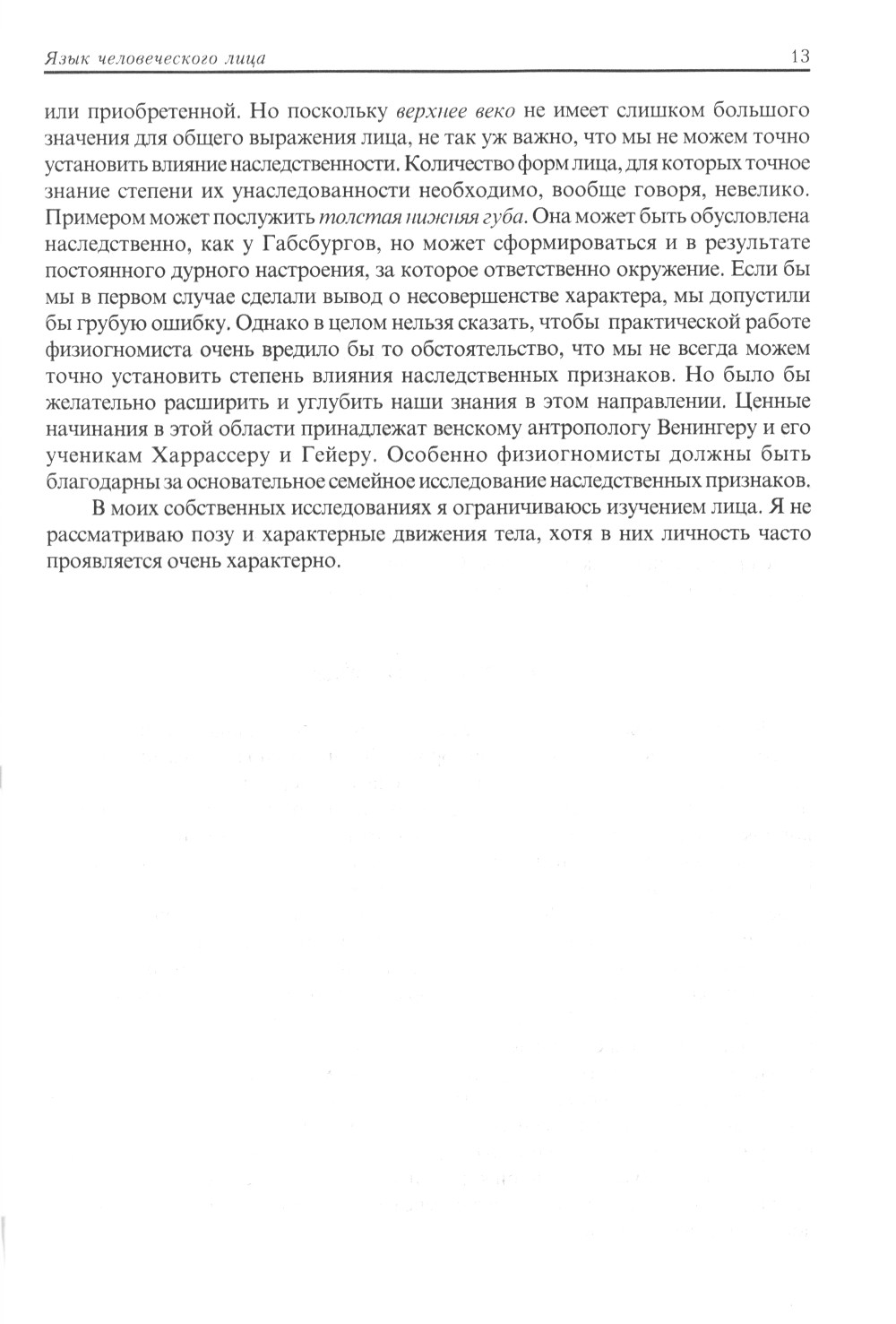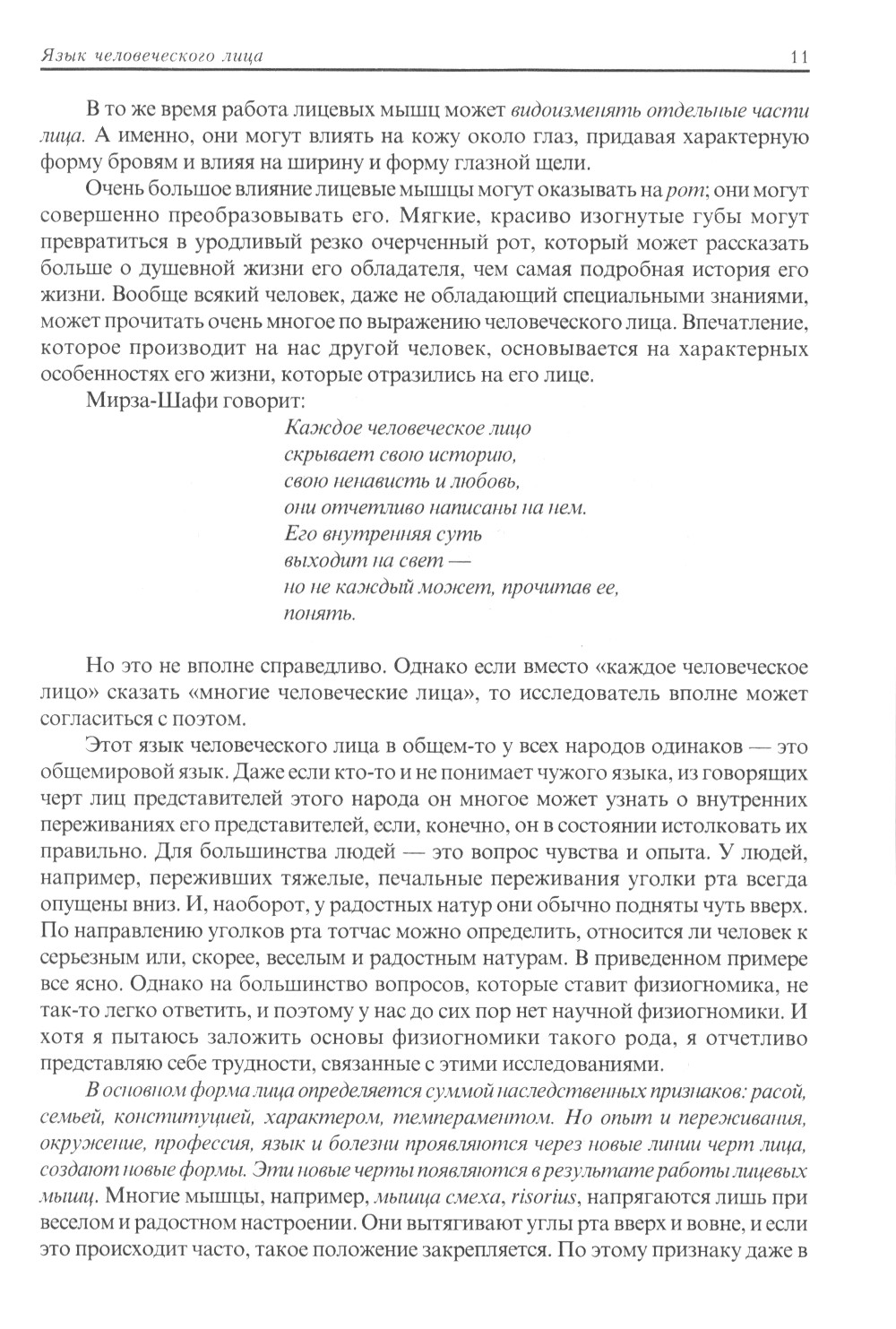 Науке под названием физиогномика уже много тысяч лет. Первыми физиогномистами были дикари, которые раскрашивали свои лица, чтобы напугать своих врагов. Египтяне пытались достичь физиогномического эффекта, изменяя форму черепа. Характерным примером являются хранящиеся в берлинском музее искусственно вытянутые черепа дочерей Аменофиса, датируемые 1350 г. до н. э. Первым письменным свидетельством о физиогномических изысканиях мы обязаны Аристотелю. Из приписываемой ему физиогномики мы узнаем, что и до него физиогномисты исследовали выражение «лиц» животных, чтобы раскрыть тайну человеческого лица. С угасанием древних культур прекратился и интерес к физиогномике. Только у Леонардо да Винчи мы находим возрастающее количество сообщений о его физиогномических наблюдениях. Очень подробными физиогномическими исследованиями занимался Микеланджело - о чем, без сомнения, свидетельствуют его картины, которые правдиво и даже натуралистично передают человеческие страсти и страдания - но он, к сожалению, не оставил никаких письменных свидетельств о своих физиогномических исследованиях. Книга известного немецкого ученого будет полезна практическим психологам, художникам, сотрудникам правоохранительных органов, а также всем тем, кто интересуется психологией.| Издательство | Профит Стайл |