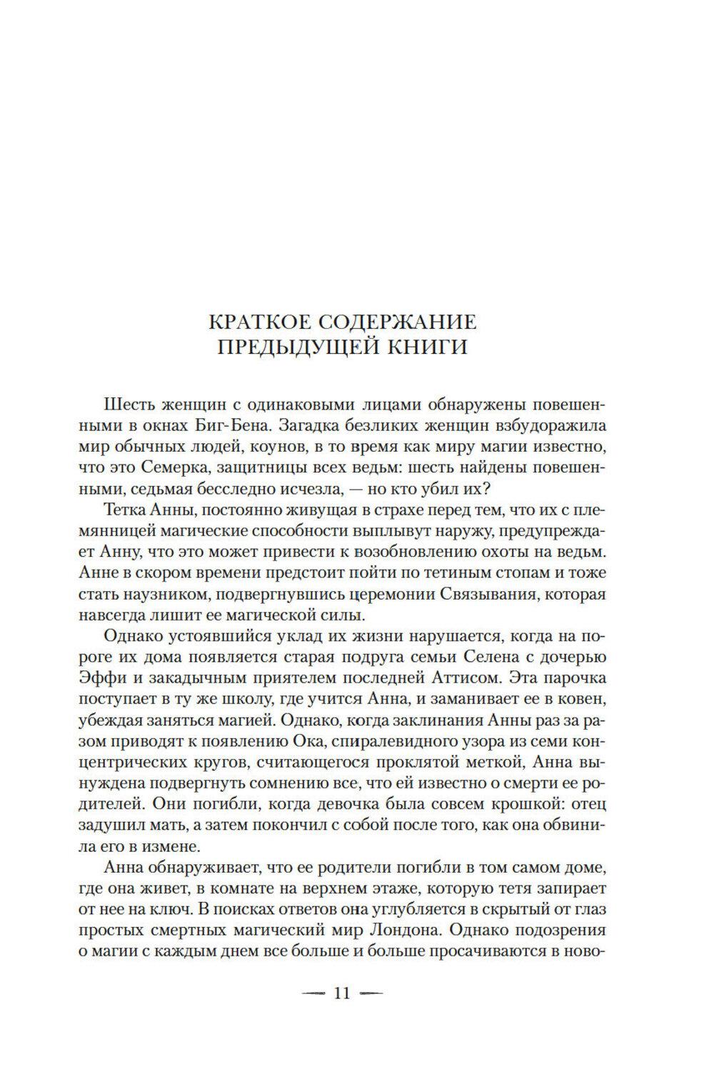 СОДЕРЖИТ ИНФОРМАЦИЮ О НАРКОТИЧЕСКИХ ИЛИ ПСИХОТРОПНЫХ ВЕЩЕСТВАХ, УПОТРЕБЛЕНИЕ КОТОРЫХ ОПАСНО ДЛЯ ЗДОРОВЬЯ. ИХ НЕЗАКОННЫЙ ОБОРОТ ВЛЕЧЕТ УГОЛОВНУЮ ОТВЕТСТВЕННОСТЬ. Вороны Тауэра накликали беду на Лондон. Странное поведение птиц заставляет многих снова поверить в колдовство. Бюро профилактики и предотвращения колдовских практик делает все возможное, чтобы искоренить магию, так что охота на ведьм продолжается. Помня о трагической судьбе родителей, Анна хочет забыть о своем магическом даре, однако ее магия, похоже, стала непредсказуемой... Пугающие события происходят в школе, где учатся Анна и ее сестра Эффи. Их ковен в опасности! Чтобы защитить его, сестры должны спуститься в подземный мир, где правит волшебство. Но над обеими висит древнее семейное проклятие, гласящее, что одна из них убьет другую. А кроме того, их разделяет предательство. Смогут ли они после этого полностью доверять друг другу? Продолжение романа «Игла и нить».| Издательство | Азбука |