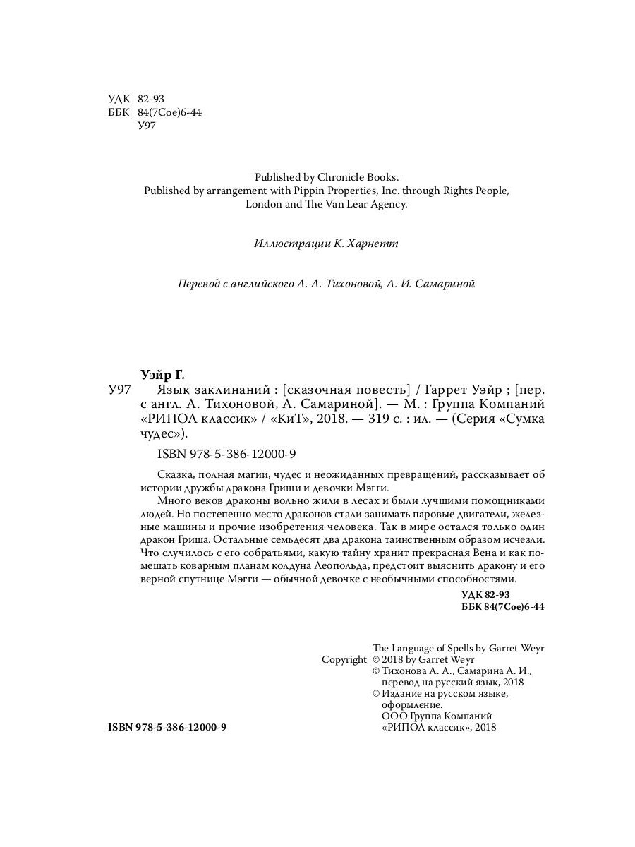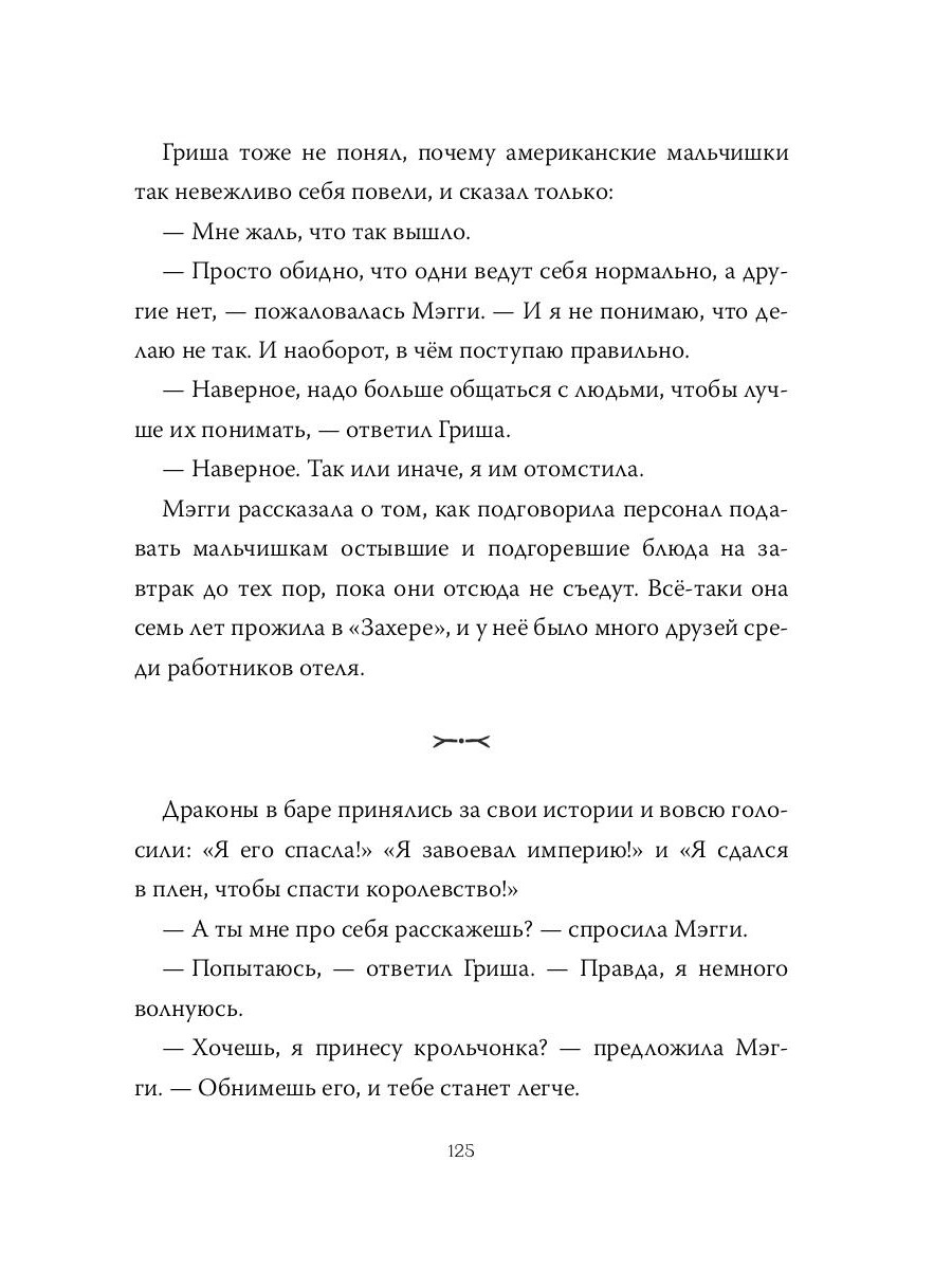 Сказка, полная магии, чудес и неожиданных превращений, рассказывает об истории дружбы дракона Гриши и девочки Мэгги. Много веков драконы вольно жили в лесах и были лучшими помощниками людей. Но постепенно место драконов стали занимать паровые двигатели, железные машины и прочие изобретения человека. Так в мире остался только один дракон Гриша. Остальные семьдесят два дракона таинственным образом исчезли. Что случилось с его собратьями, какую тайну хранит прекрасная Вена и как помешать коварным планам колдуна Леопольда, предстоит выяснить дракону и его верной спутнице Мэгги - обычной девочке с необычными способностями.| Издательство | РИПОЛ классик Группа Компаний ООО |