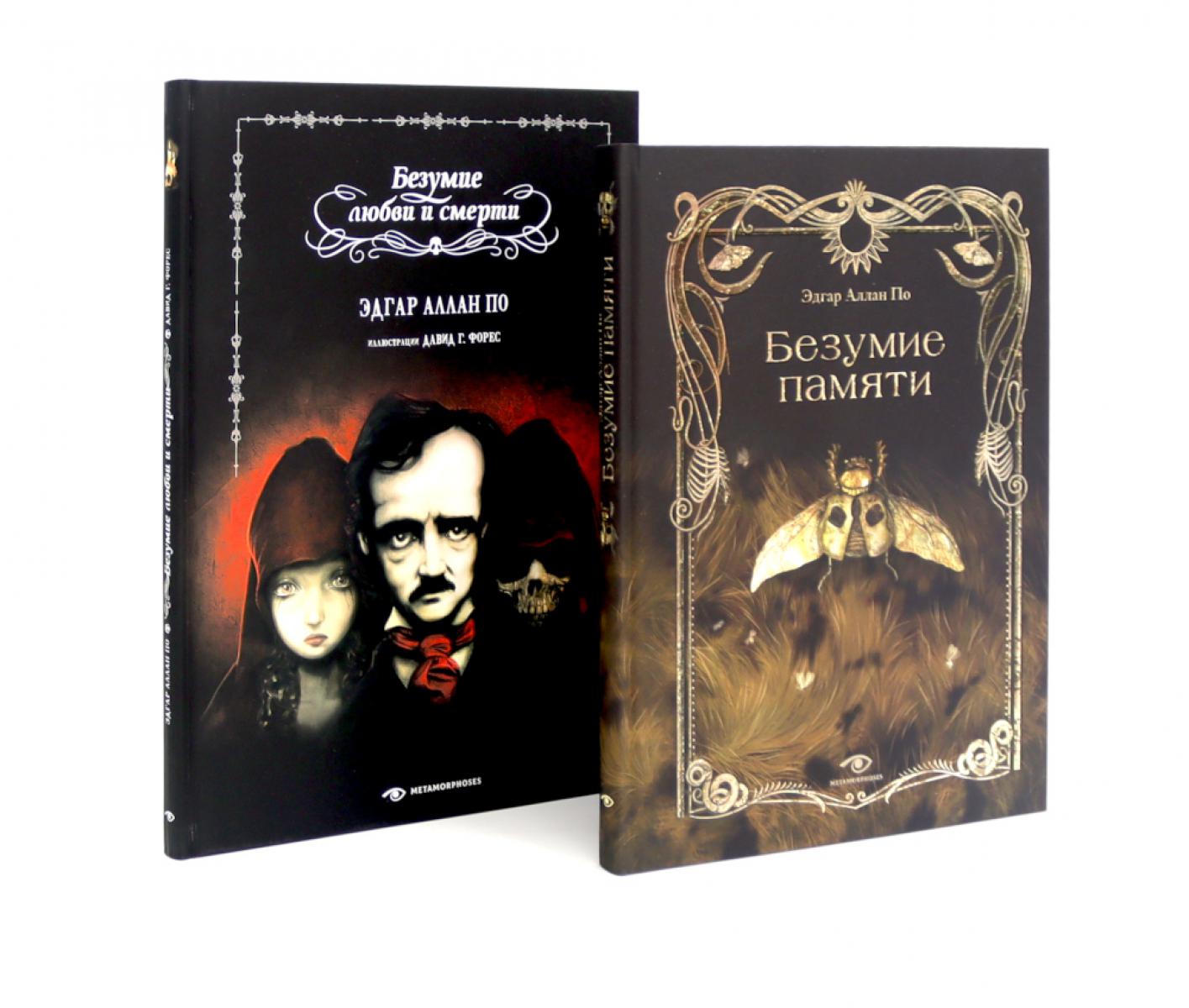 Комплект содержит книги. «Безумие памяти» Непревзойденный мастер психологической прозы, художник мрачной красоты Эдгар Аллан По приглашает на прогулку по лабиринтам памяти. Где еще хранятся отголоски безвозвратно покинувшей мир любви и воспоминания опустевшего дома с пыльными трещинами на стенах. Где бродят тени прошлого, потустороннее врывается в повседневность, а смерть буднично следует по пятам. Памяти, которая способна все превратить в безумие. Новеллы американского классика воссоздают целый мир так устрашающе и завораживающе достоверно, что без малого два столетия остаются ярким явлением в мировой литературе. Мы предлагаем открыть их заново: в пугающем и роскошном оформлении великолепной современной художницы Анастасии Сикилинда. «Безумие любви и смерти» - леденящая душу антология текстов и рисунков, посвященная всем влюбленным в творчество Эдгара Аллана По. Восемь самых знаменитых работ непревзойденного американского мастера ужасов в причудливом ритме соединяются с иллюстрациями Давида Г. Фореса, погружая читателя и зрителя в мир, где жизнь и смерть существуют так близко, что достаточно моргнуть - и от тела остается лишь прах. В рассказах Э. По неосязаемая чума ходит за людьми по пятам, художник обесцвечивает живую невесту, рисуя ее, ворон говорит с неутешным вдовцом, карлик и танцовщица изобличают лживых мудрецов, вырванное из груди сердце призывает убийцу покаяться, скорый покойник молит о пробуждении или вечном сне, а неразлучные возлюбленные ложатся в саркофаг, чтобы не расставаться вовек. В своих иллюстрациях Форес постарался передать суть творчества писателя: они загадочны, красивы и невероятно жутки, от них не оторвать глаз и мурашки бегут по коже. И страх, страх, много страха и любви!..| Издательство | Metamorphoses |