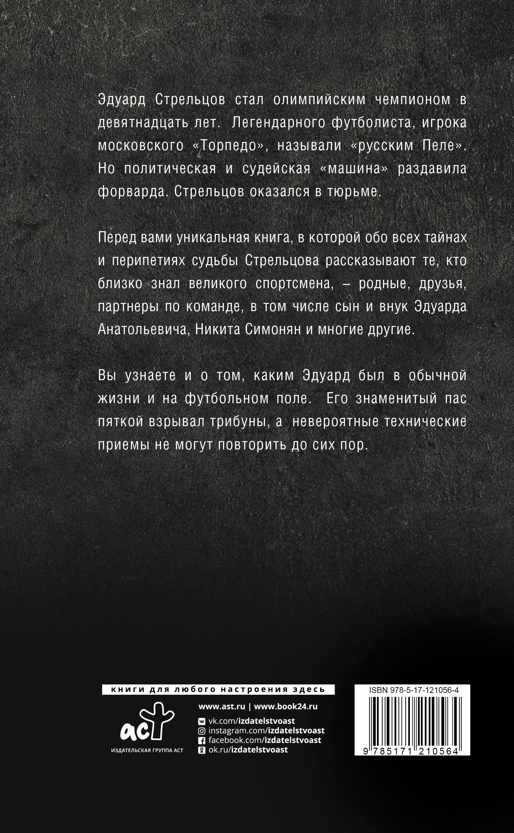 В книгу вошли воспоминания коллег, друзей и родственников легендарного футболиста. Только настоящие факты и никаких вымыслов о «деле Стрельцова». Достоверно и подробно - об одном из самых известных футболистов СССР! Книга о борьбе и силе воли. Она научит тому, что никогда нельзя сдаваться на пути к своей мечте! Интереснейшая новинка в серии «Кино-книга»!| Издательство | ИЗДАТЕЛЬСТВО "АСТ" |